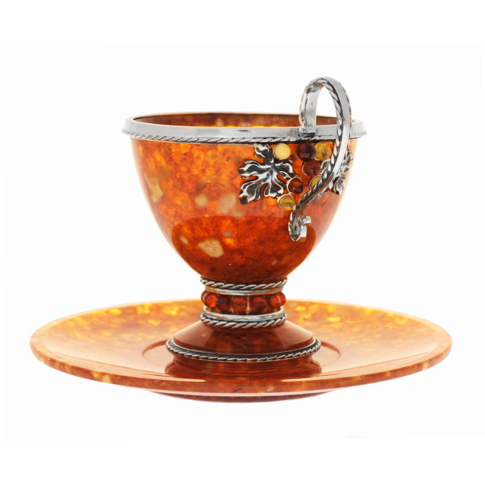 Чайный набор из янтаря "виноград" на 4 персоны 120мл. (серебро)