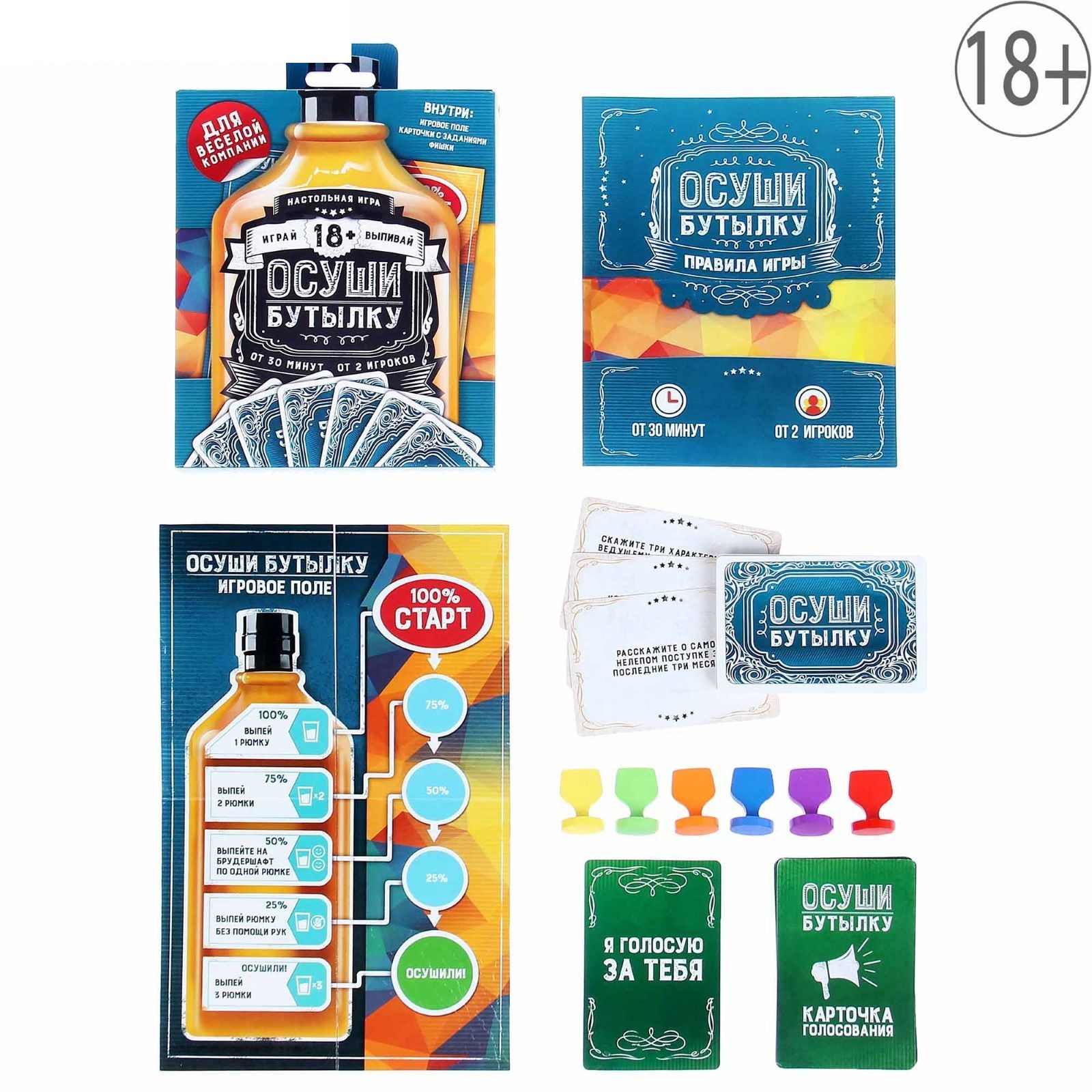 Игра алкогольная - фанты пей до дна. Пей до дна! Собираетесь провести вечер в компании друзей с алкоголем? Планируете осушить бутылочку да не одну? Пусть эта вечеринка пройдет так, чтобы о ней вспоминали ещё долго, а невероятно весёлая алкогольная игра вам в этом поможет! Она не только сблизит всех друзей, но ещё и подарит массу позитивных эмоций! Невероятно весёлая игра! Вы спросите, почему? Да потому что в ней нужно двигаться, выполнять безумно смешные задания и, конечно же, выпивать! Игровое поле здесь оформлено в виде бутылки. Вот её-то вам и нужно осушить, пройдя от старта до финиша. Вас ждут задания-фанты, выполнив которые, свой голос нужно будет отдать лучшему игроку. А вот в случае, если кто-то из участников не справится с заданием, он должен будет выпить «штрафную». Каждому сектору поля соответствует количество алкоголя, которое должно находиться в «штрафной» рюмочке. Что входит в набор: игровое поле; 30 карточек с заданиями; 6 карточек для голосования; 6 фишек игроков. Отрывайтесь, веселитесь, осушить бутылку торопитесь! Размер: 16,7 см х 13,8 см х 3,2 см Вес, гр: 169 Материал: Бумага, картон, пластик Производство: ЛАС ИГРАС Количество игроков: 4 - 6 игроков Количество игроков: 2 - 4 игрока Время игры: 20 минут Жанр игры: Фанты и подвижные Жанр игры: Алкогольная Жанр игры: Бродилки Повод для игры: Взрослый праздник Повод для игры: Вечеринка Возраст: От 18 лет  развернуть описание ▼