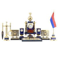 Размер часы 38х31х9 см, визитница 12,5х11х6 см, календарница 3х26х17 см, нож 7х22х7 см, лупа 7х17х7 см.