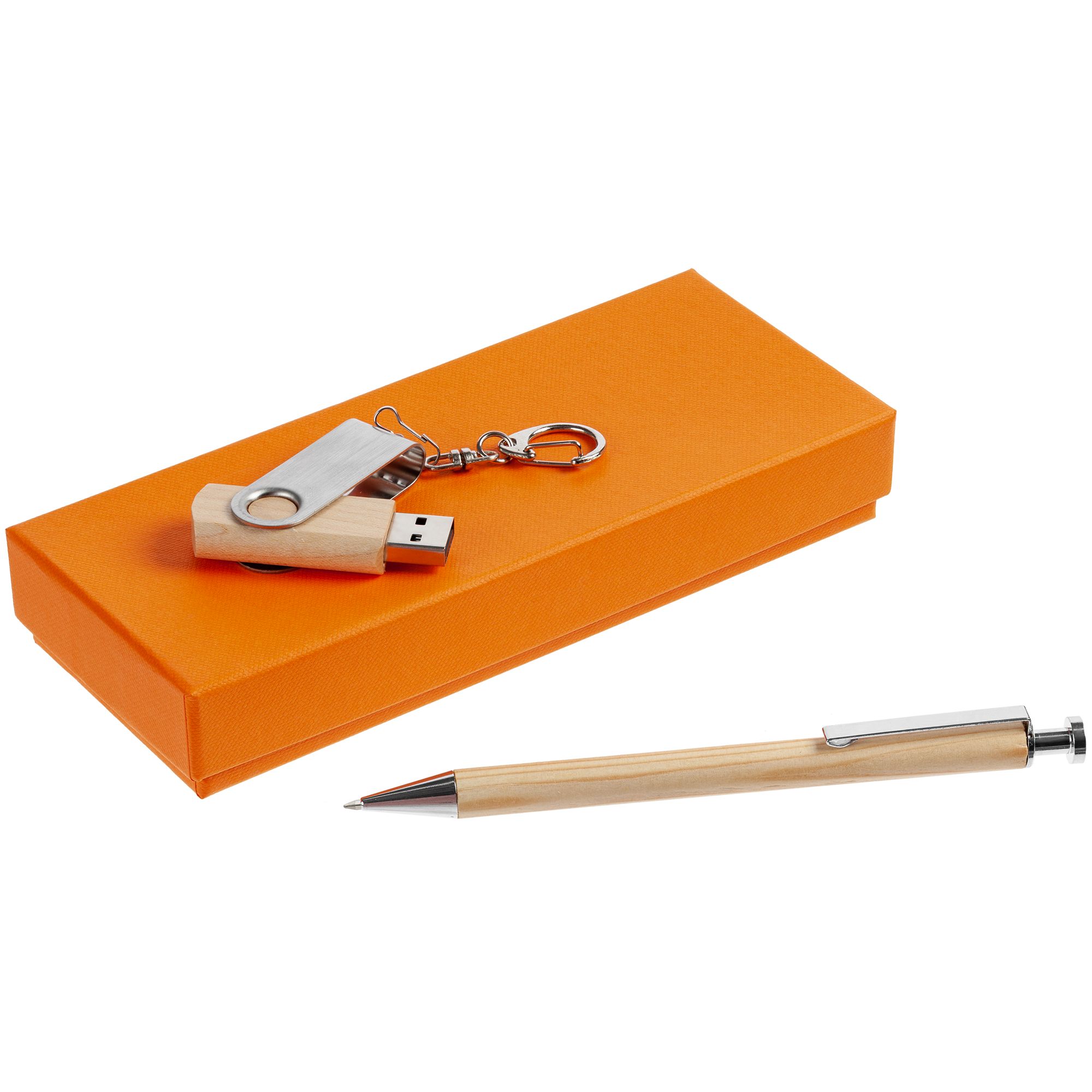 Набор woodline, 8 гб, оранжевый. Размеры ручка: 14х0,9 см; флешка: 5,4х0,9х1,8 см; коробка: 17х7,3х2,5 см