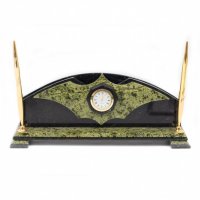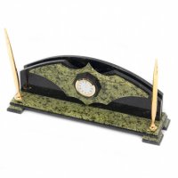 Настольный набор с ручками камень змеевик. ХАРАКТЕРИСТИКИ Размер26х12х13 см Вес3400 г КаменьЗмеевик МесторождениеБаженовское, Свердловская область, Россия ОПИСАНИЕ Настольный набор выполнен из камня змеевик, имеет размеры 26х12х13 см и весит 3400 г. Настольный набор из змеевика станет отличным подарком руководителю. Этот аксессуар органично впишется в интерьер любого кабинета, став удобным дополнением рабочего стола.  развернуть описание ▼