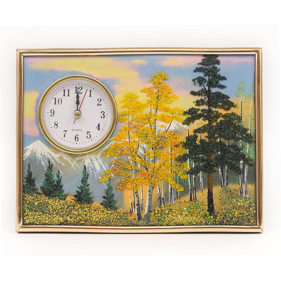Настольные часы с панно на мдф осень №2 (20х15 см)
