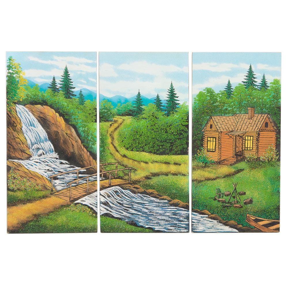Картина модульная на мдф домик у водопада №6 (40х60 см)