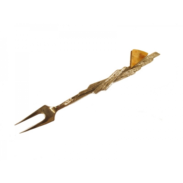 Вилочка сырная из янтаря. Состав: серебро 875 пр., янтарь. Вес серебра в изделии - 13 гр. Поставляется в подарочном футляре. В случае отсутствия товара на складе срок изготовления от трех недель.