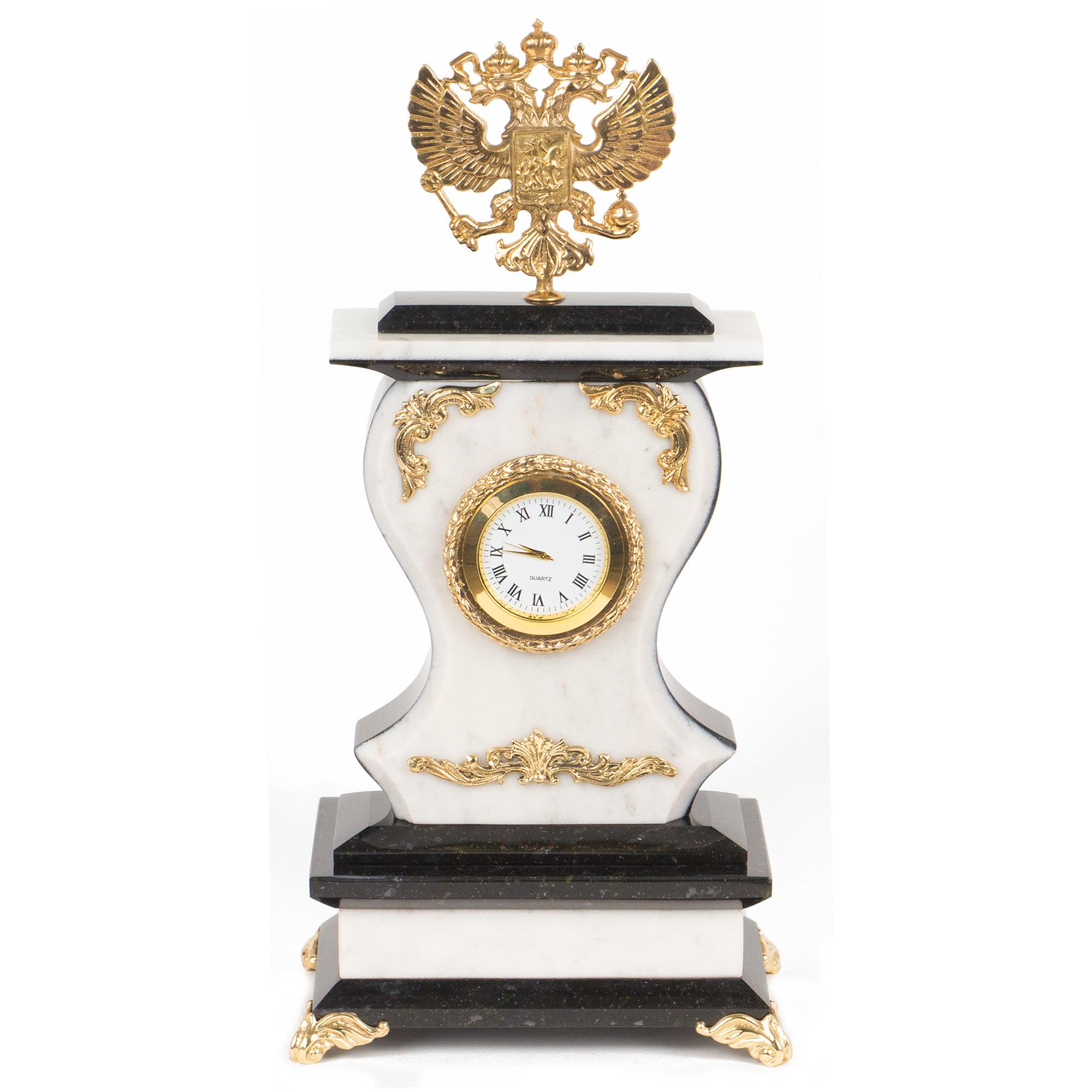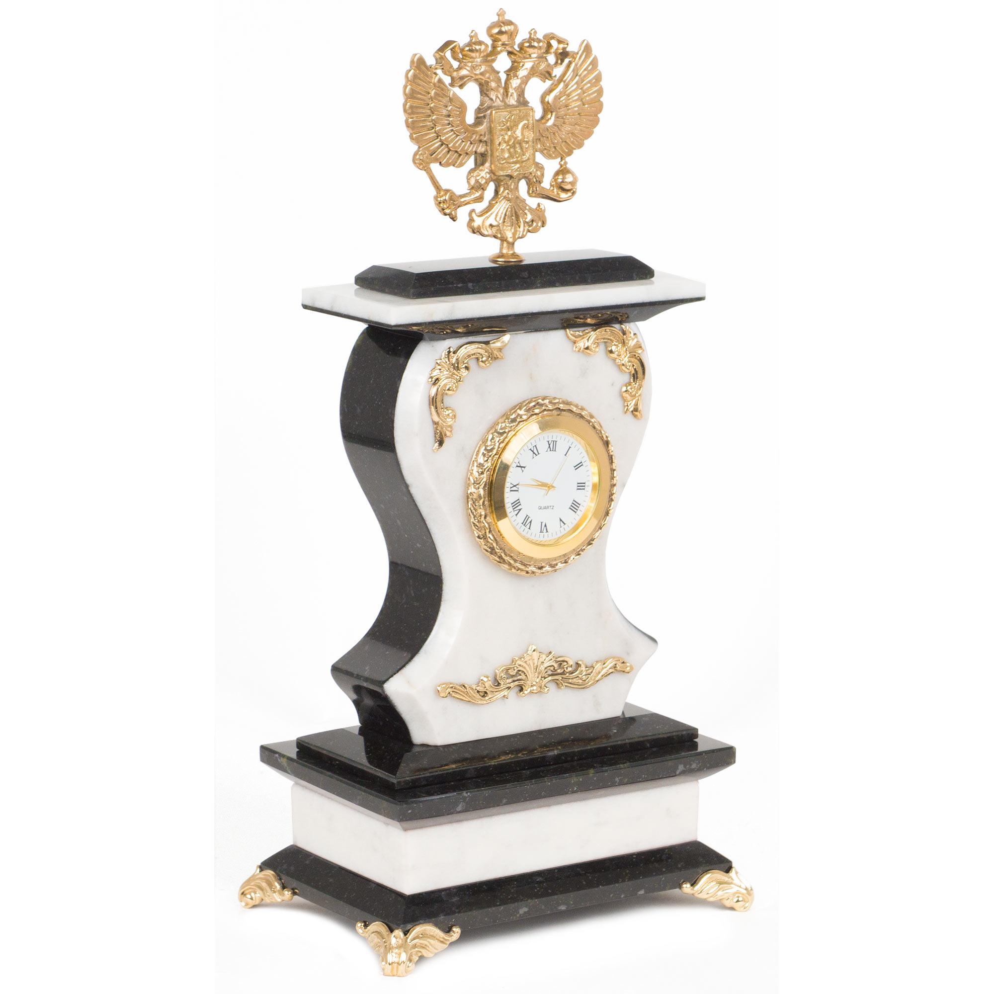 Часы герб мрамор змеевик бронза 140х95х290 мм 2700 гр.