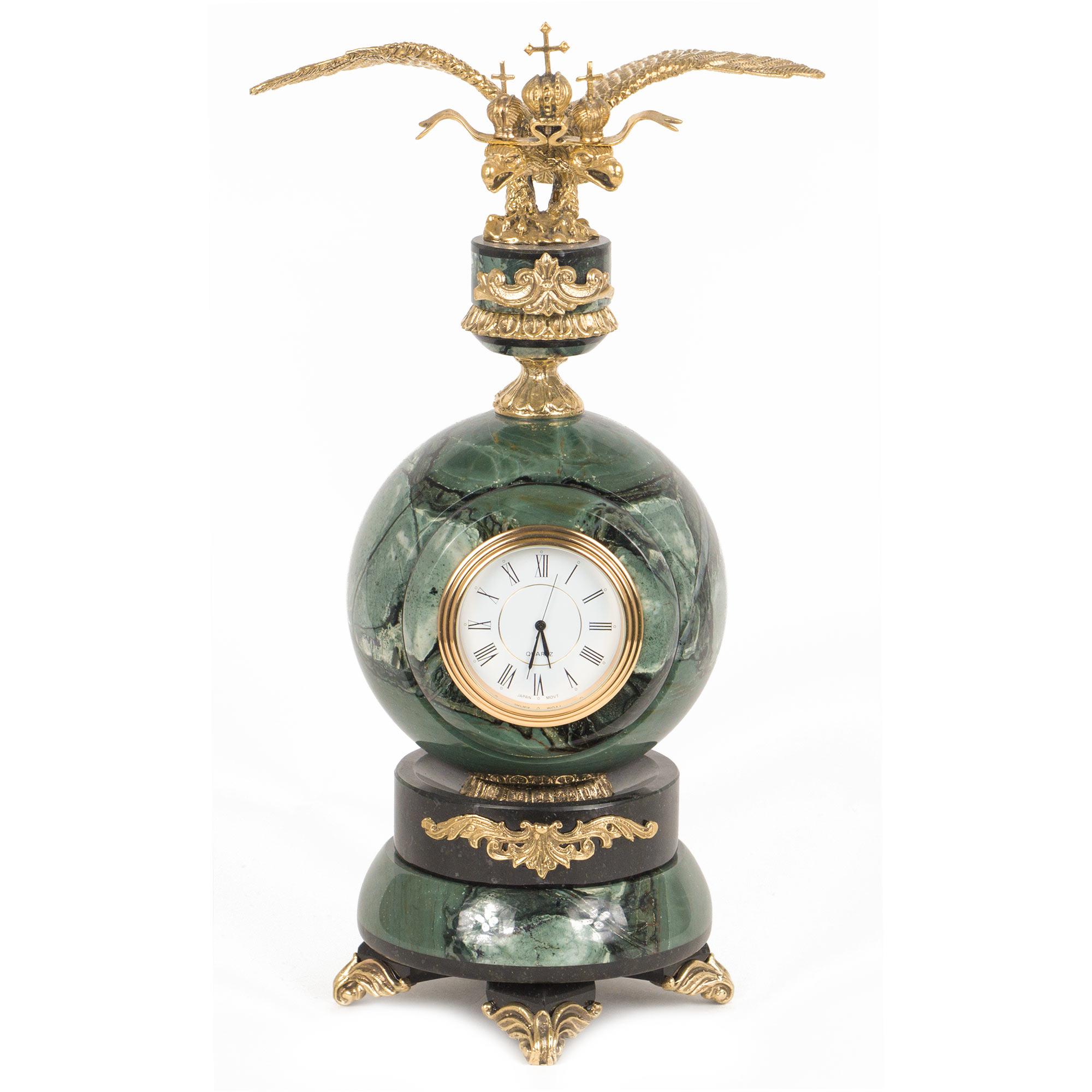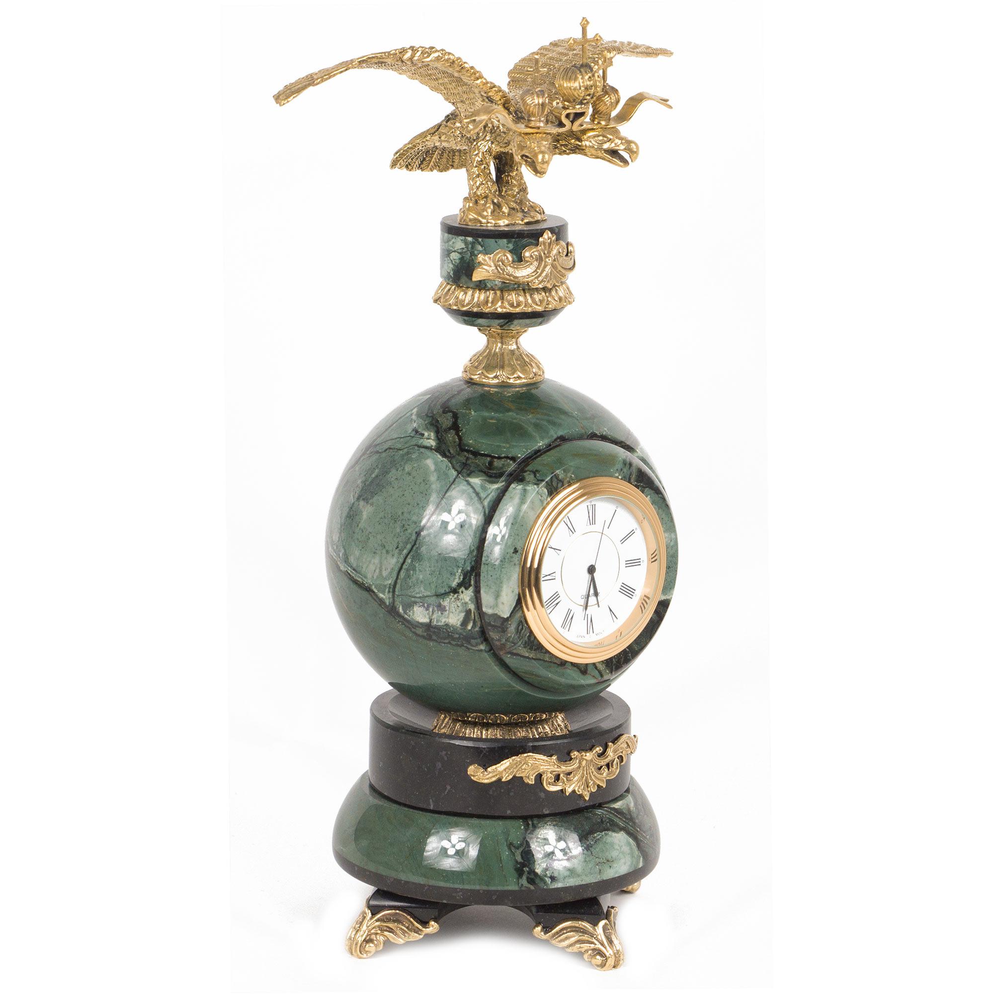 Часы двуглавый орел офиокальцит бронза 110х110х280 мм 2600 гр.