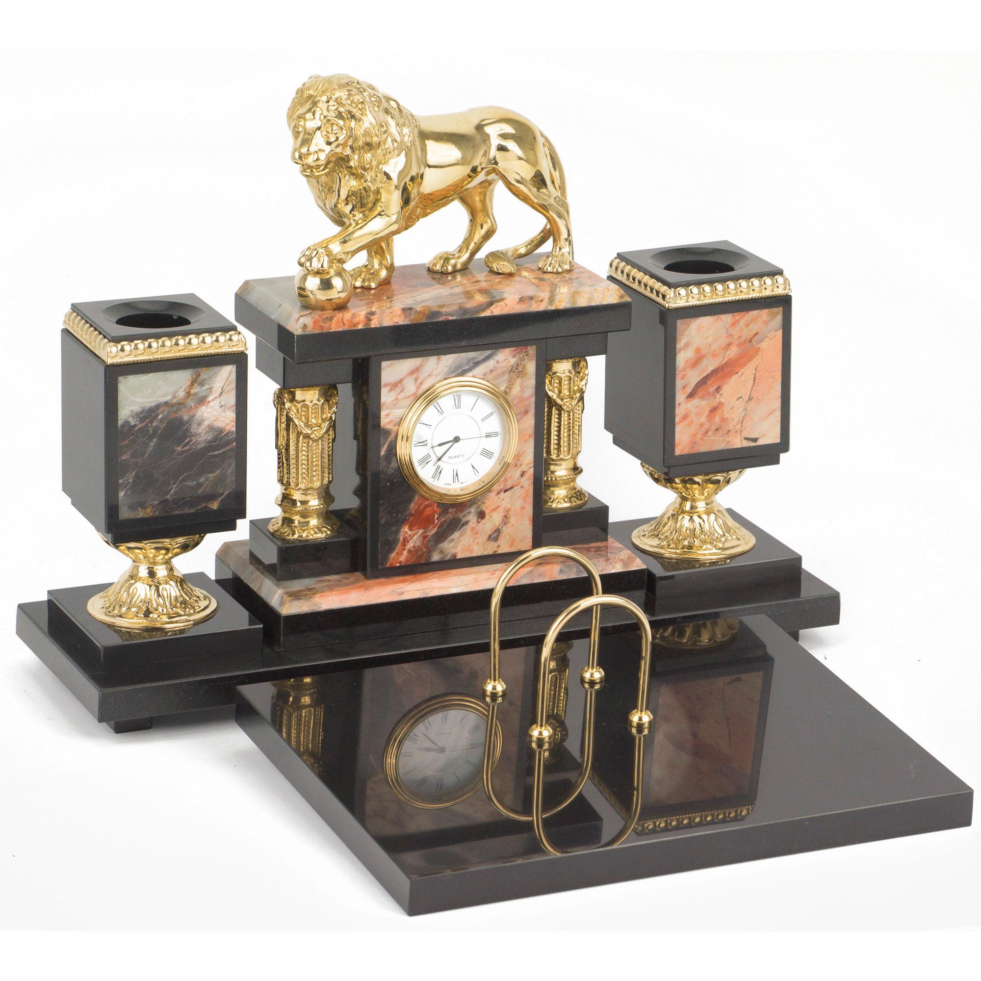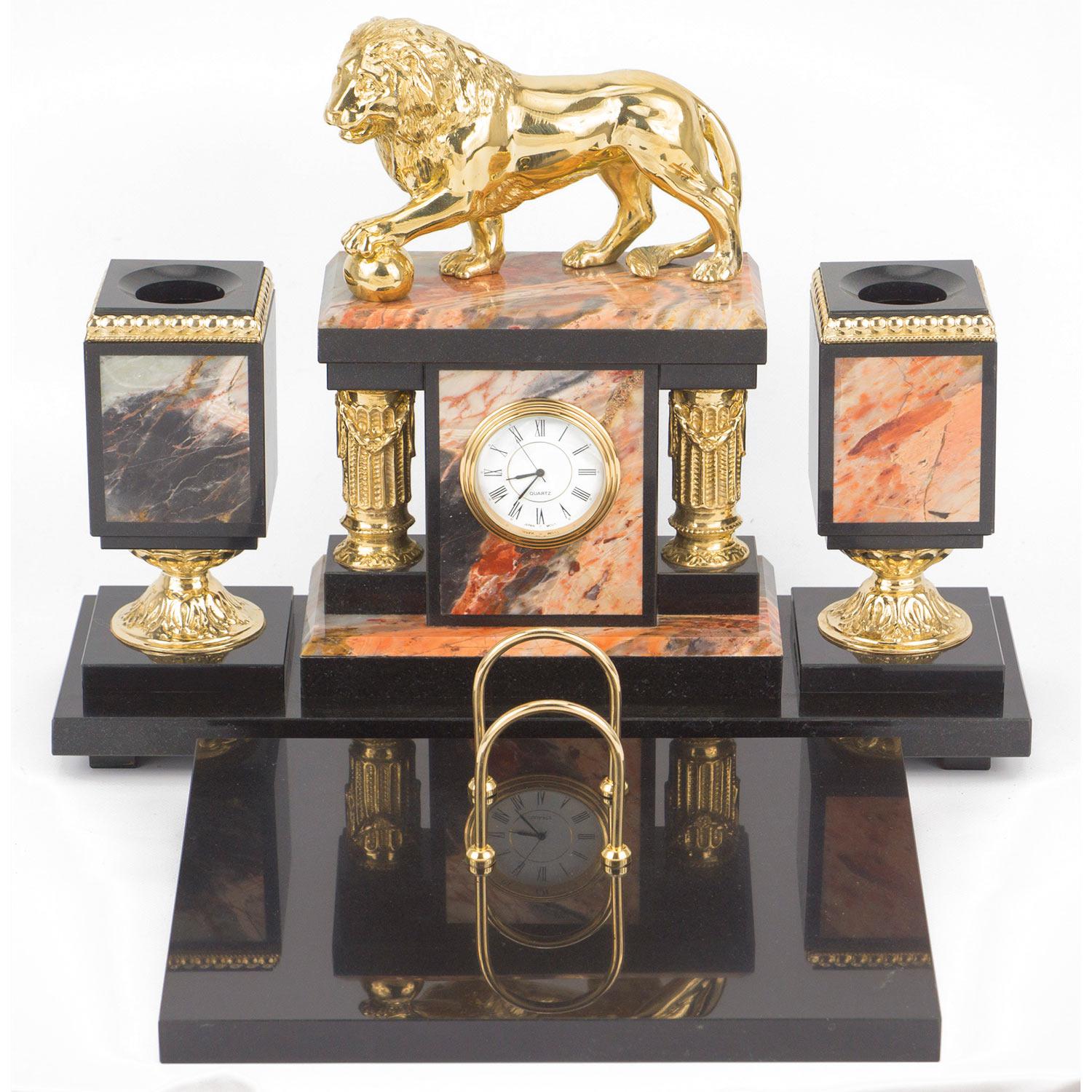 Настольный набор лев яшма долерит бронза 340х290х255 мм. Вес 14000 г Размер часы 34х11х23,5 см, календарница 24,5х18х4 см Материал яшма, долерит, бронза  развернуть описание ▼
