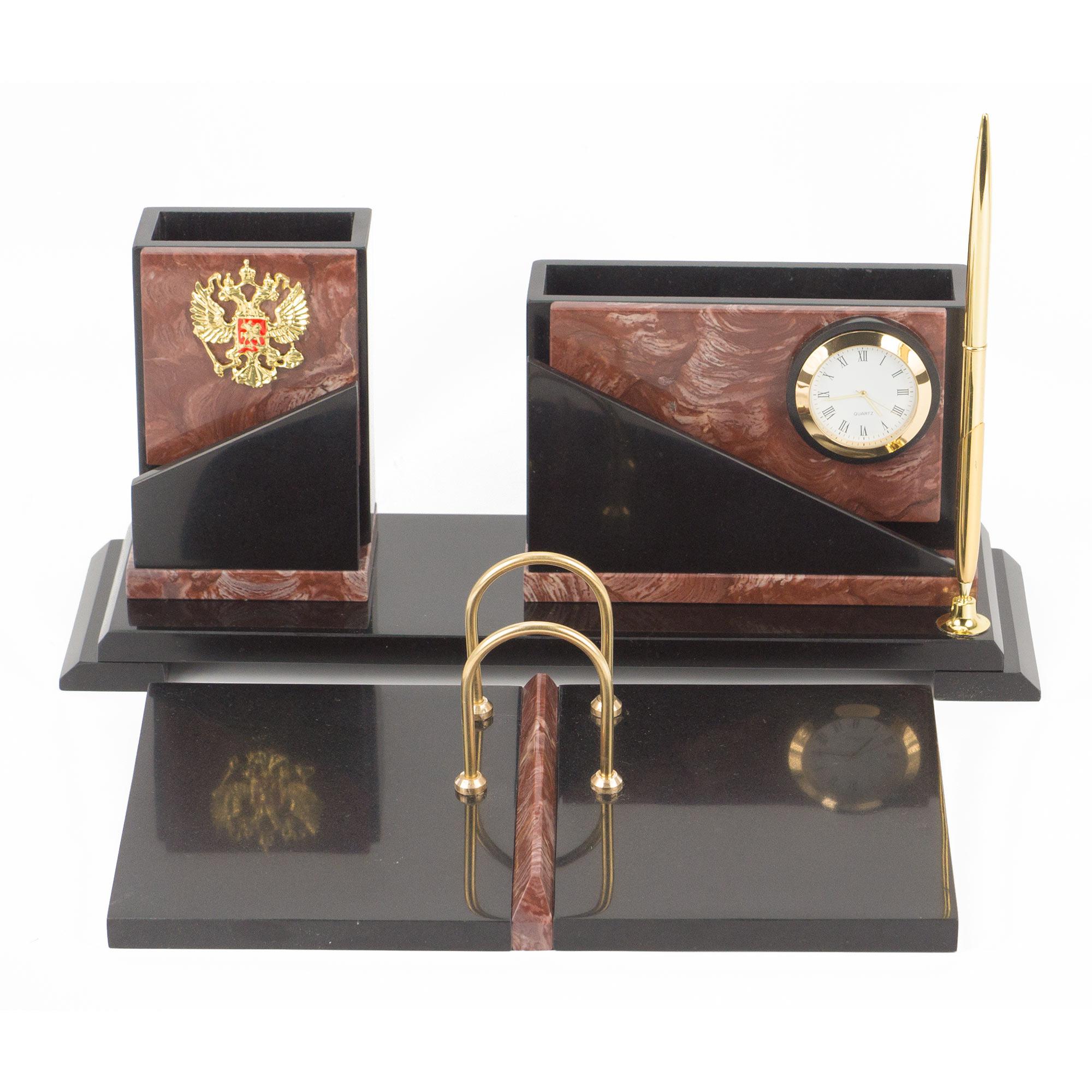 Настольный набор кремлевский лемезит долерит 320х240х140 мм 4100 гр.. Вес 4100 г Размер часы 32х10х14,5 см, календарница 26х15 см Материал лемезит, долерит  развернуть описание ▼