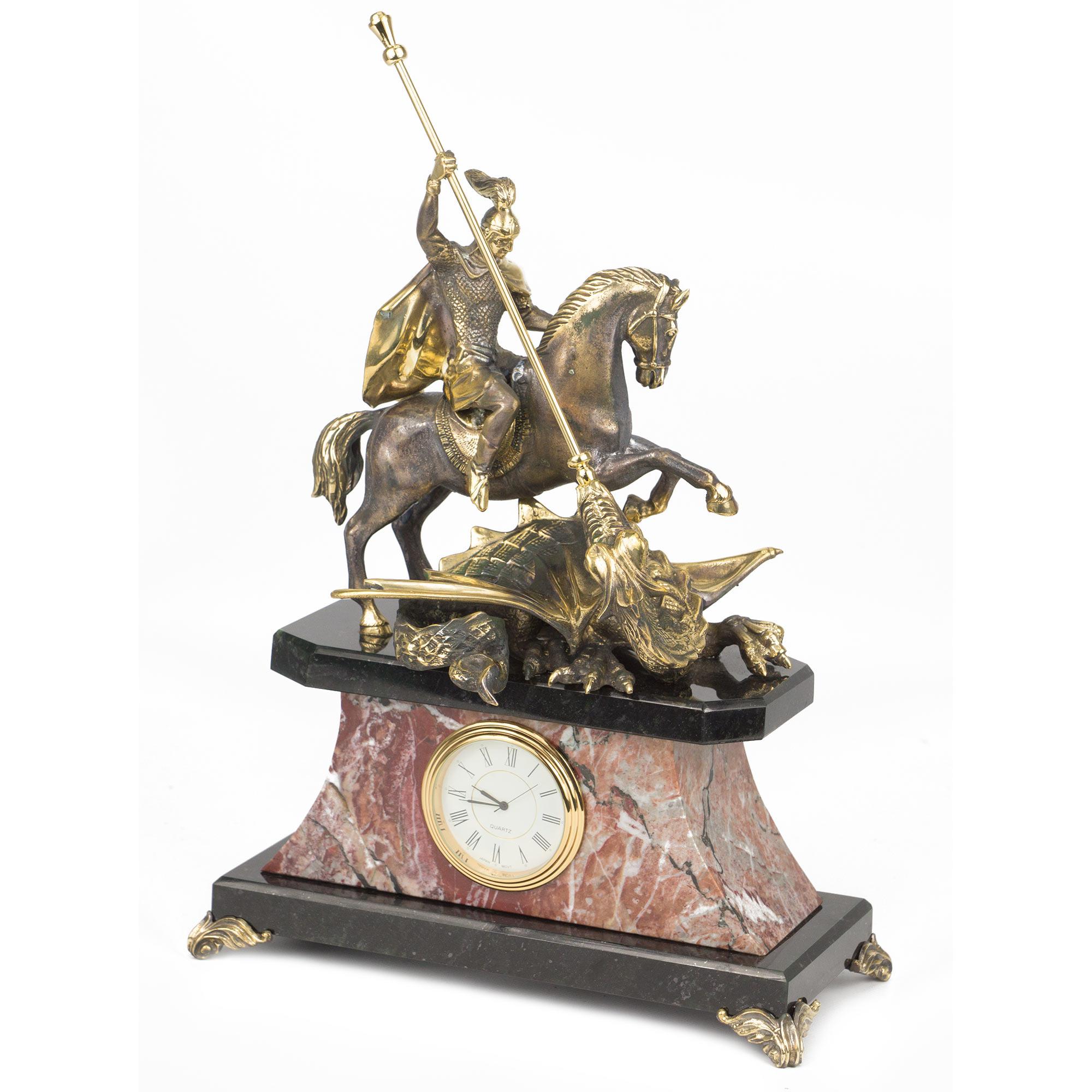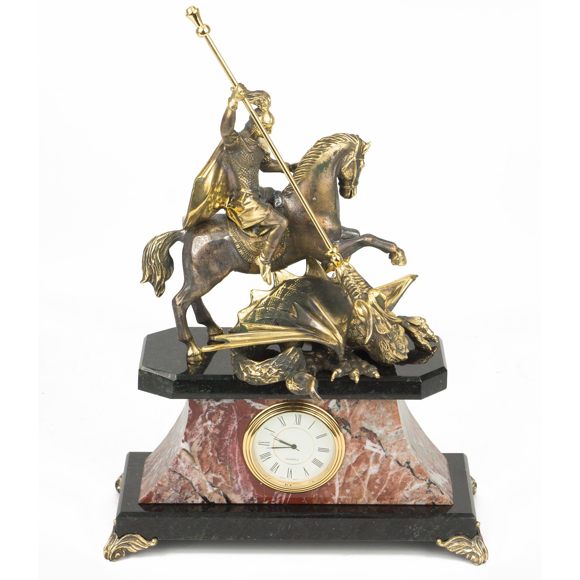 Часы георгий победоносец креноид змеевик бронза 210х100х270 мм 3800 гр.
