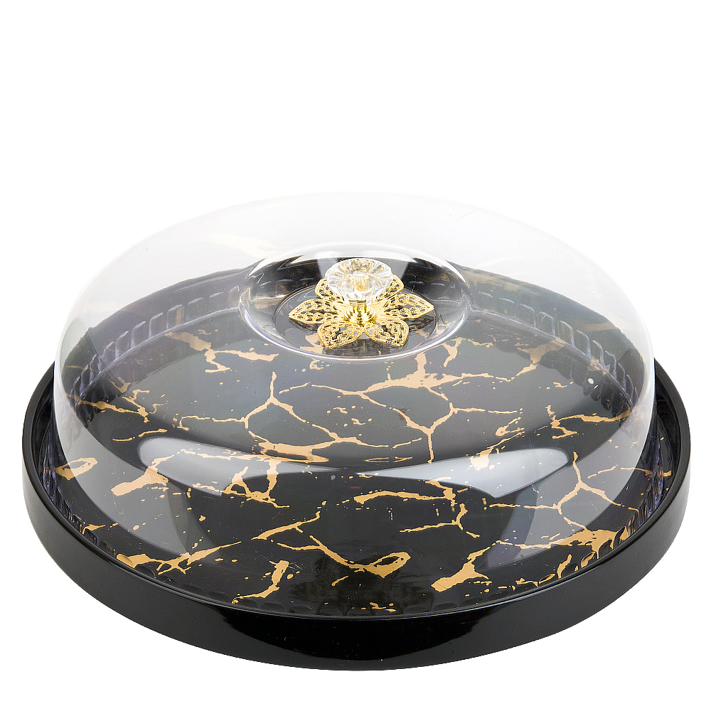 Блюдо с крышкой черный мрамор 29*29*11см. ((подарочная упаковка)