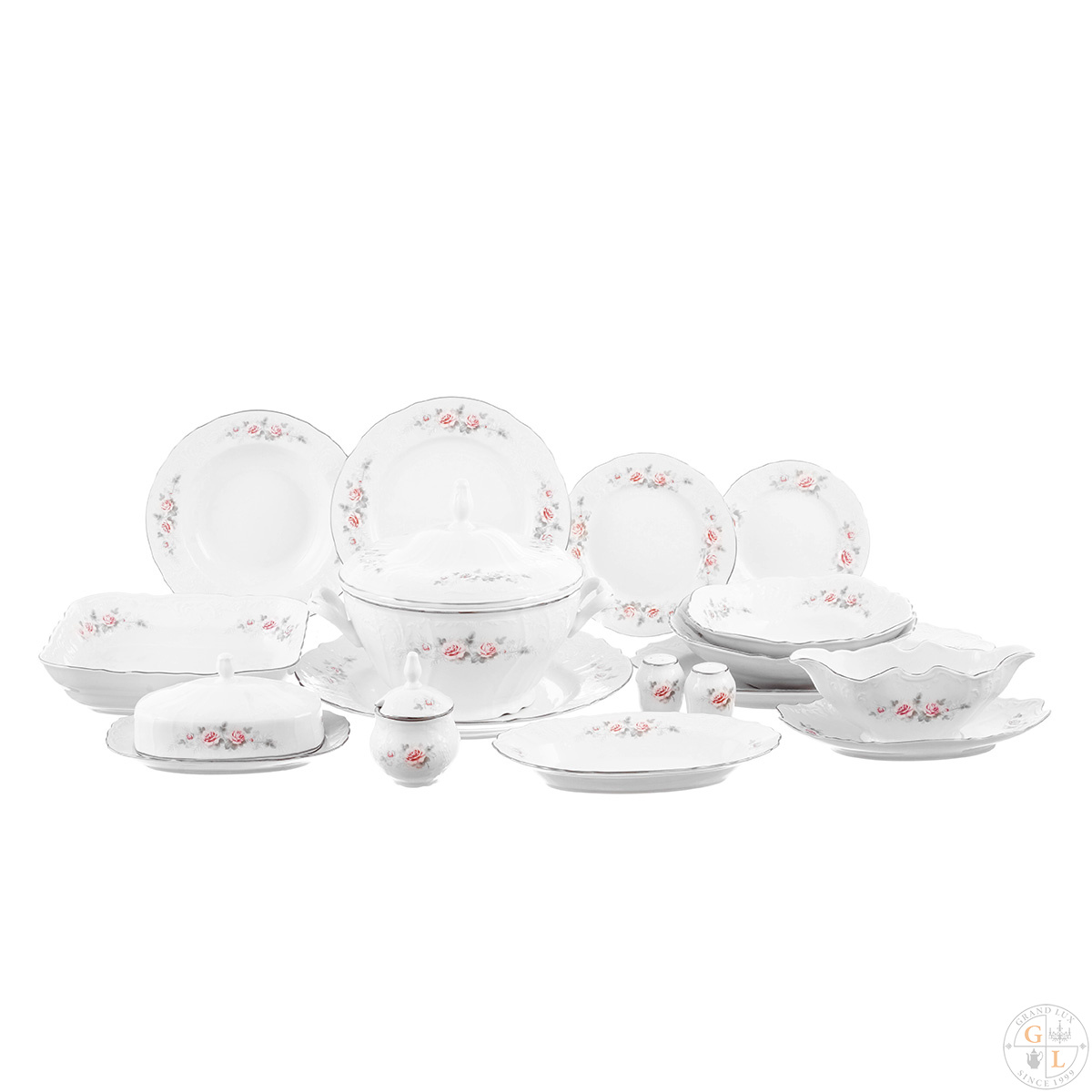Столовый сервиз на 12 персон Bernadotte серая роза платина 67 предметов