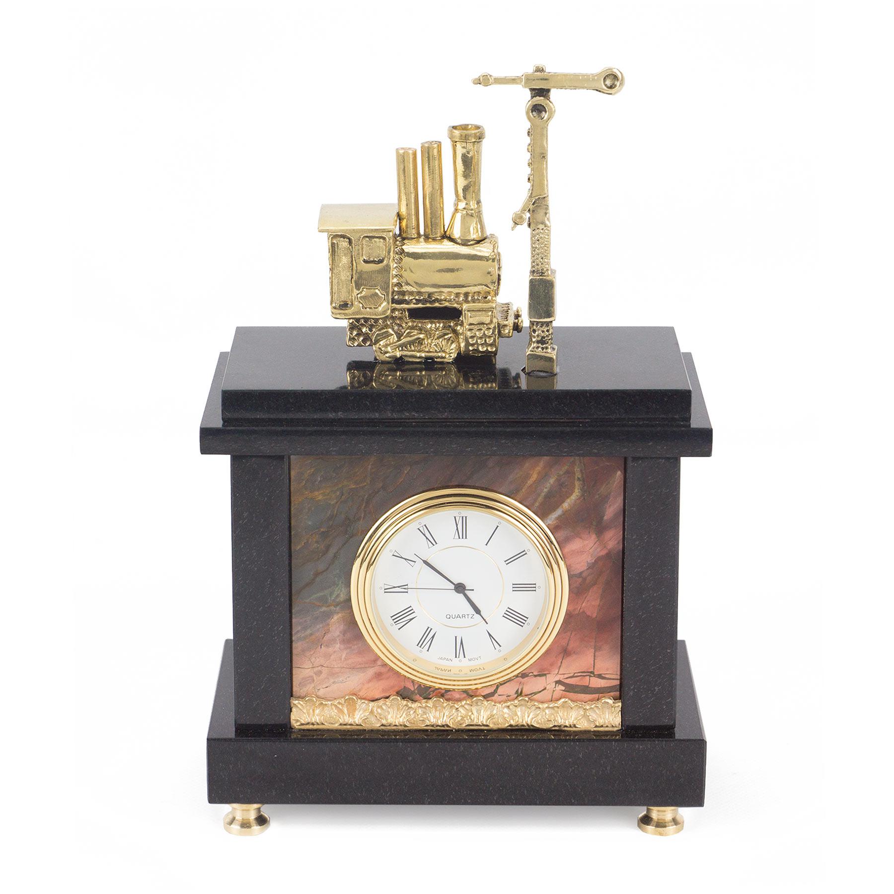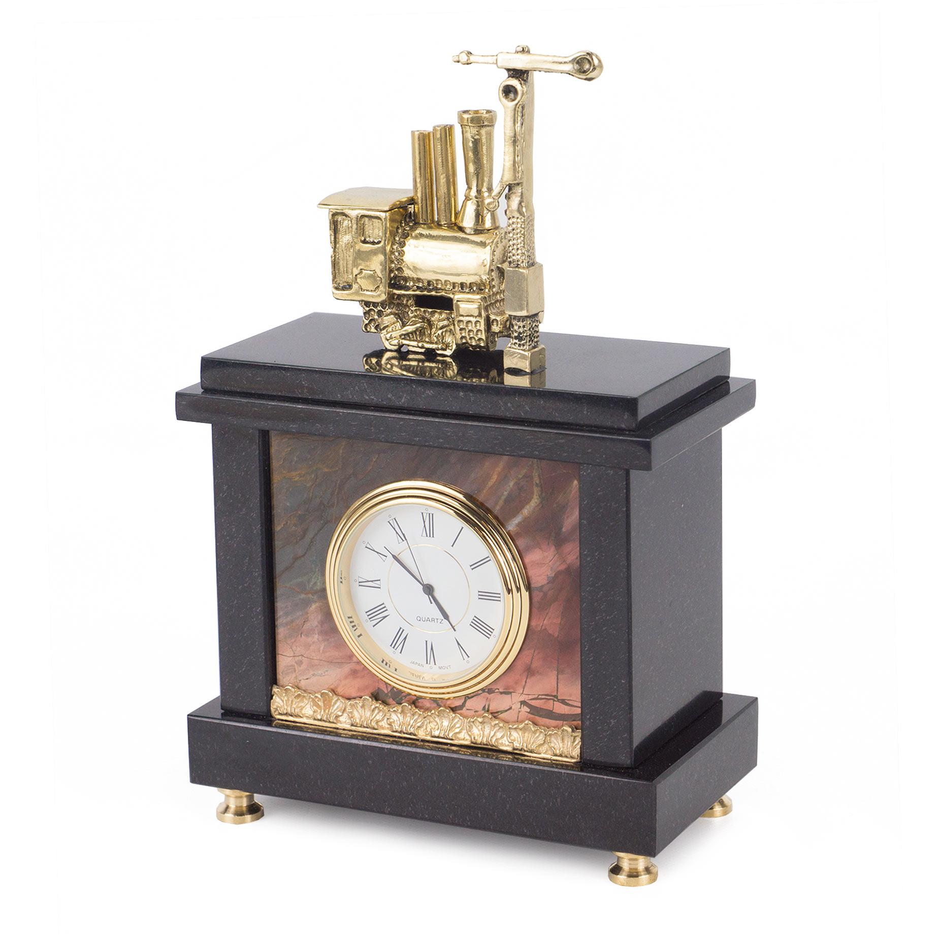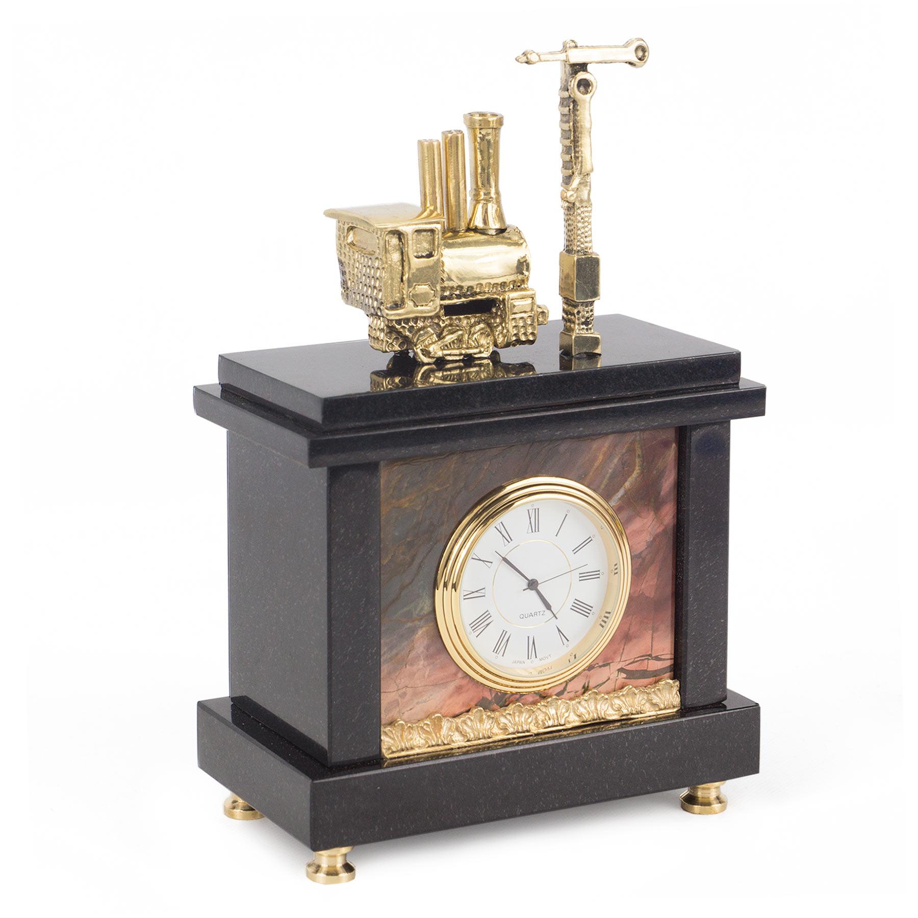 Часы паровоз с семафором бронза яшма 125х70х200 мм 1900 гр.