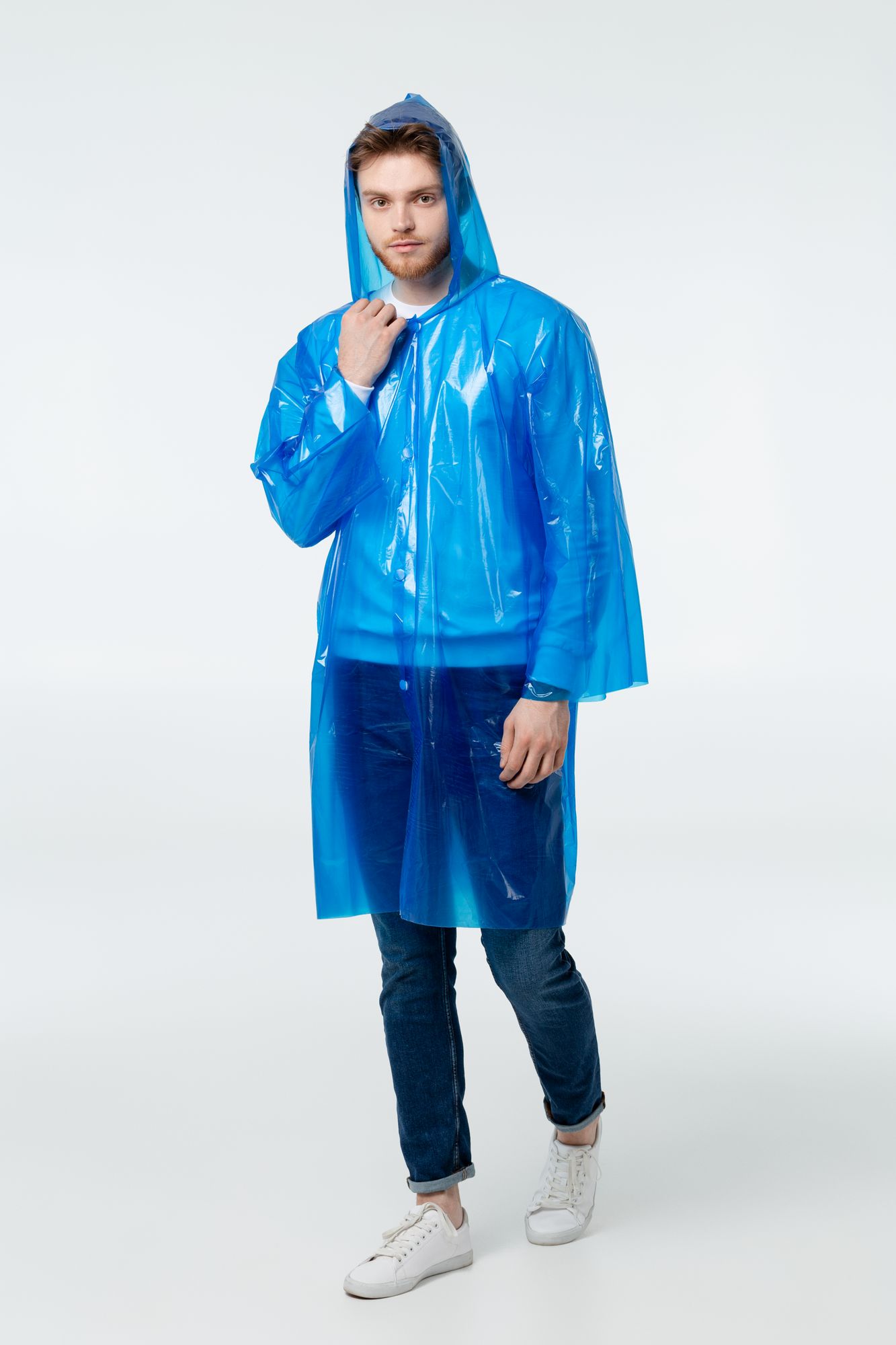 Дождевик-плащ с капюшоном и длинными рукавами.