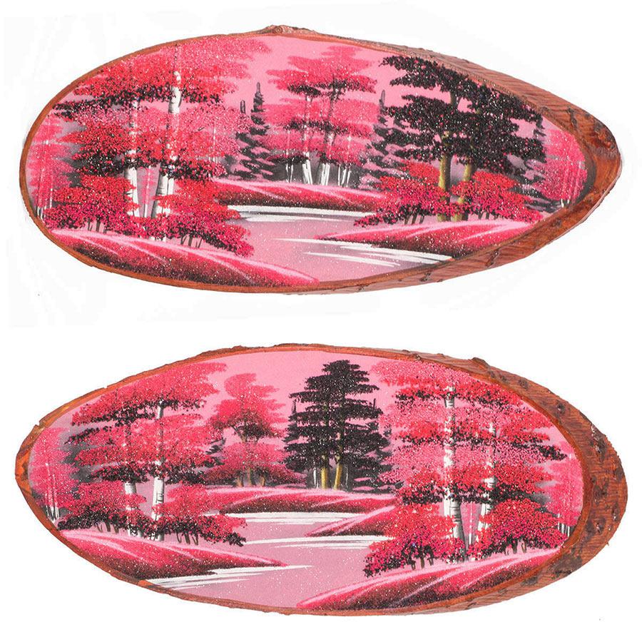 Панно на срезе дерева розовый закат горизонтальное 65-70 см