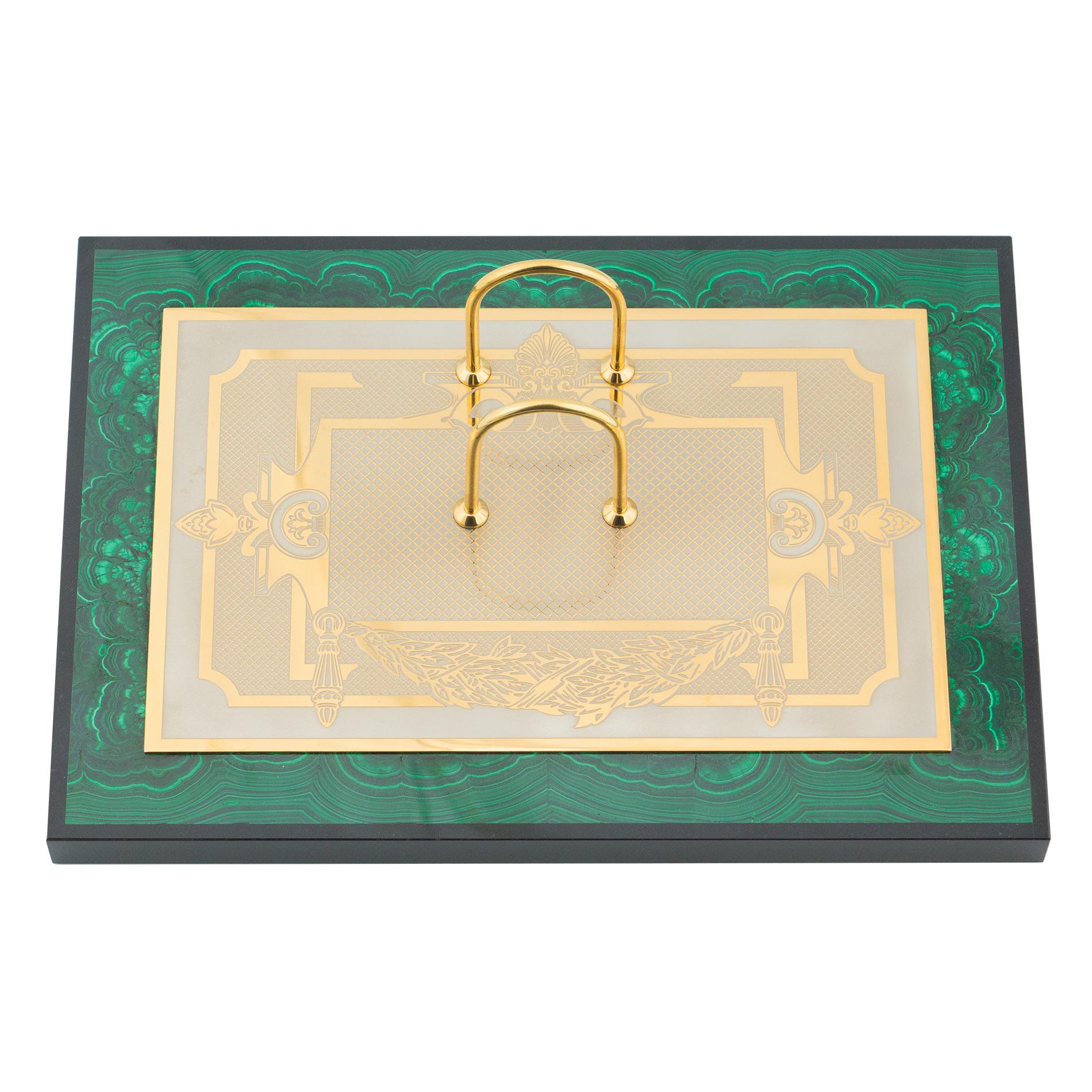 Материал: малахит, долерит, бронза, никель, покрытие золотом (999,9).