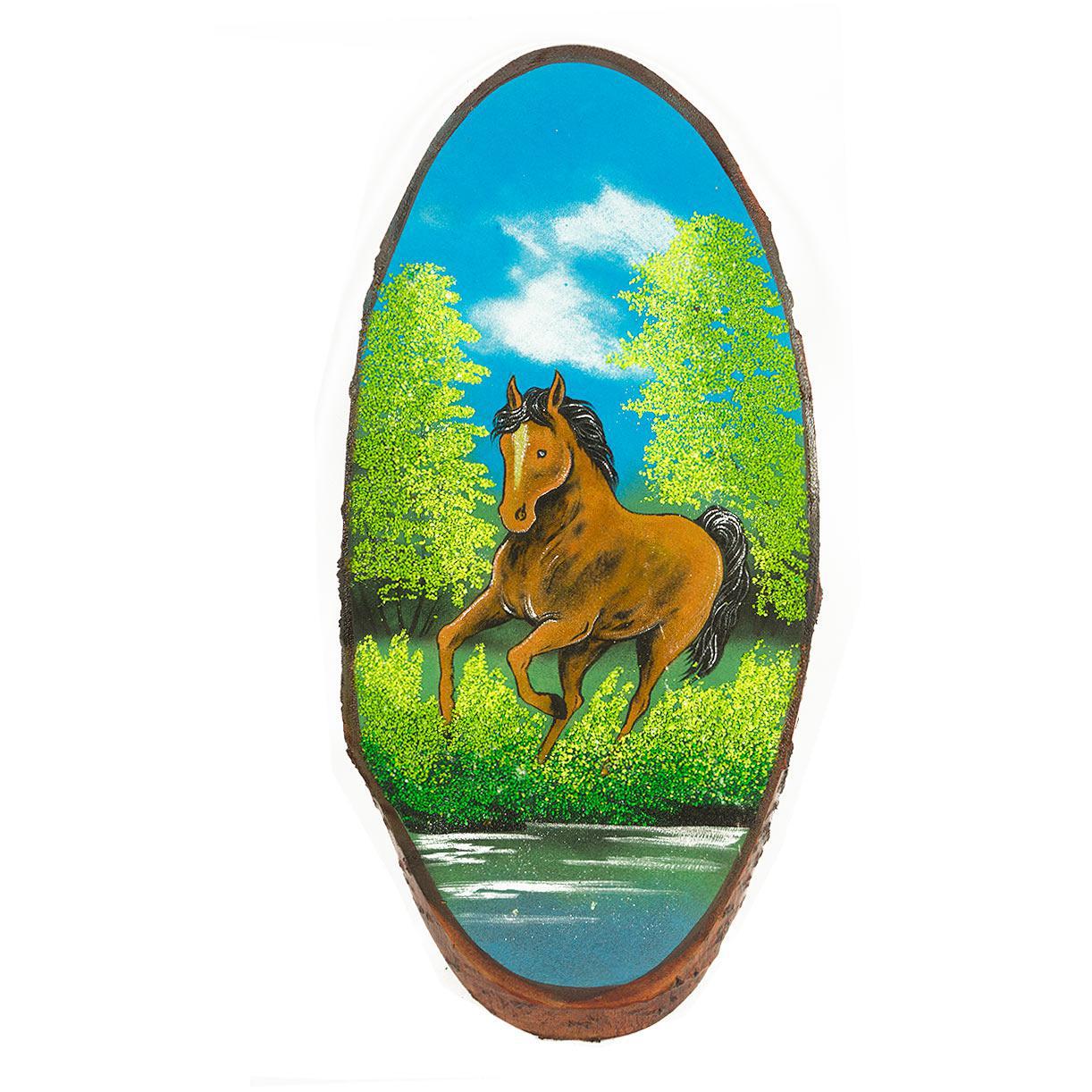 Панно на срезе дерева лошадка вертикальное 75-80 см