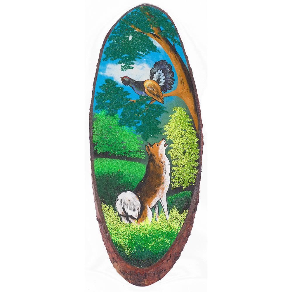 Панно на срезе дерева охота на глухаря вертикальное 75-80 см