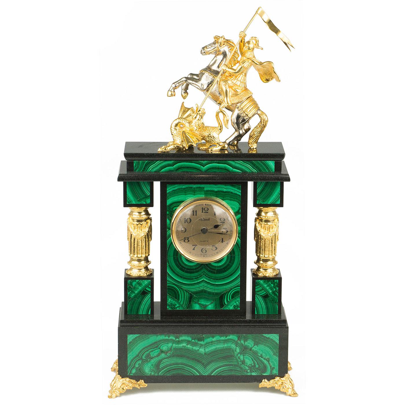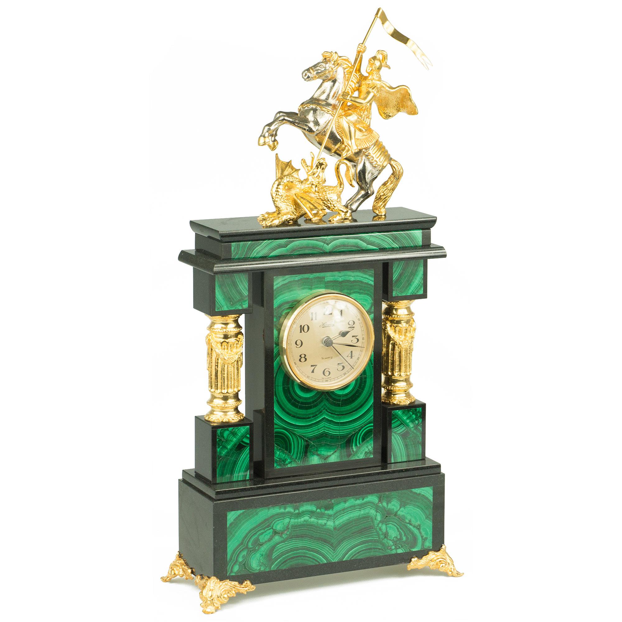 Часы георгий победоносец малахит позолота 210х90х420 мм 9000 гр.