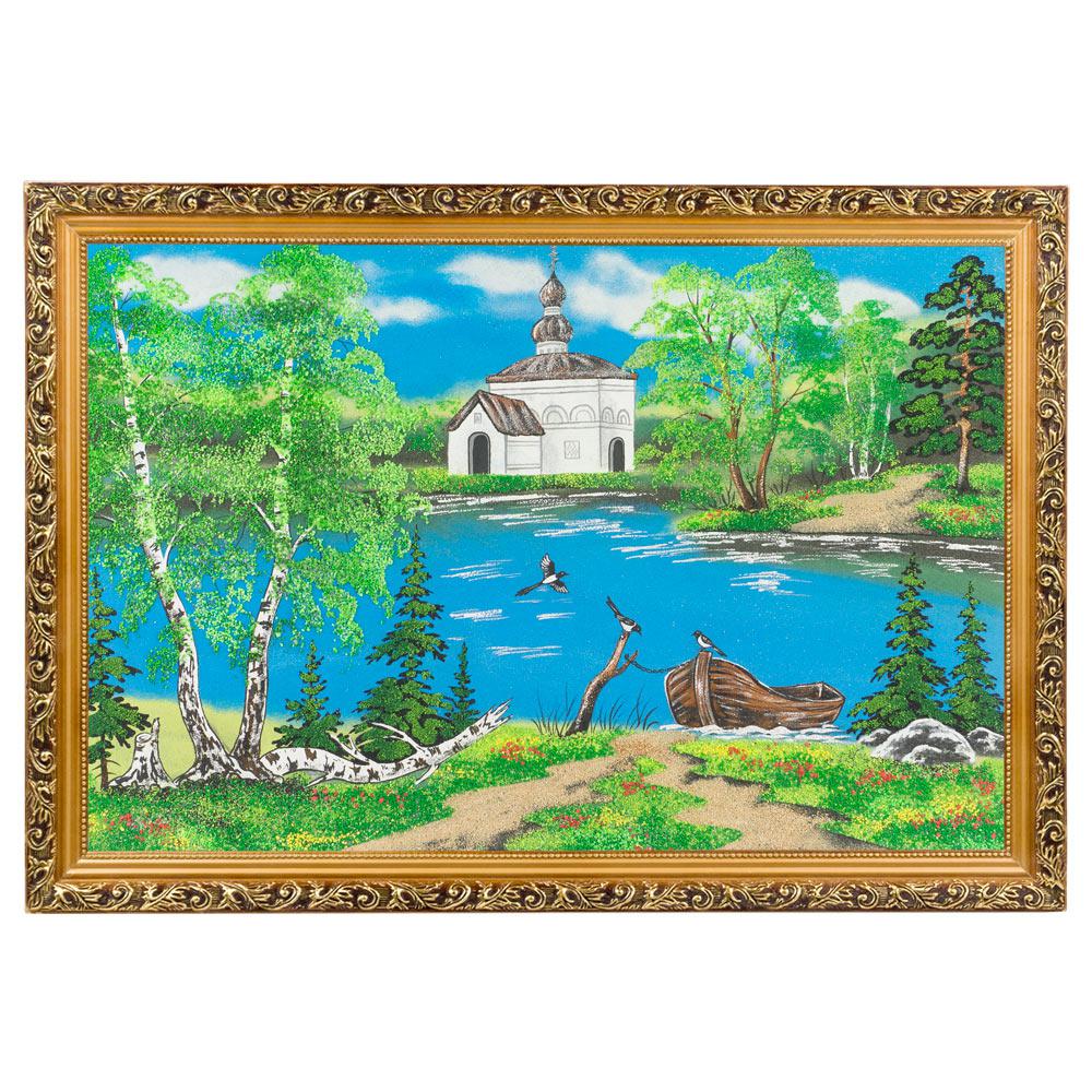 Картина церковь и лодка багет №6 (40х60 см)