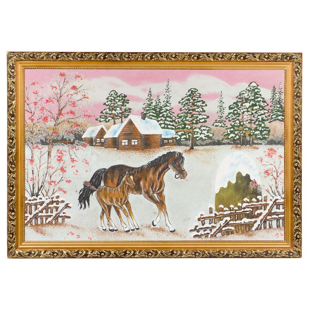 Картина лошадь с жеребенком багет гипс №6 (40х60 см)