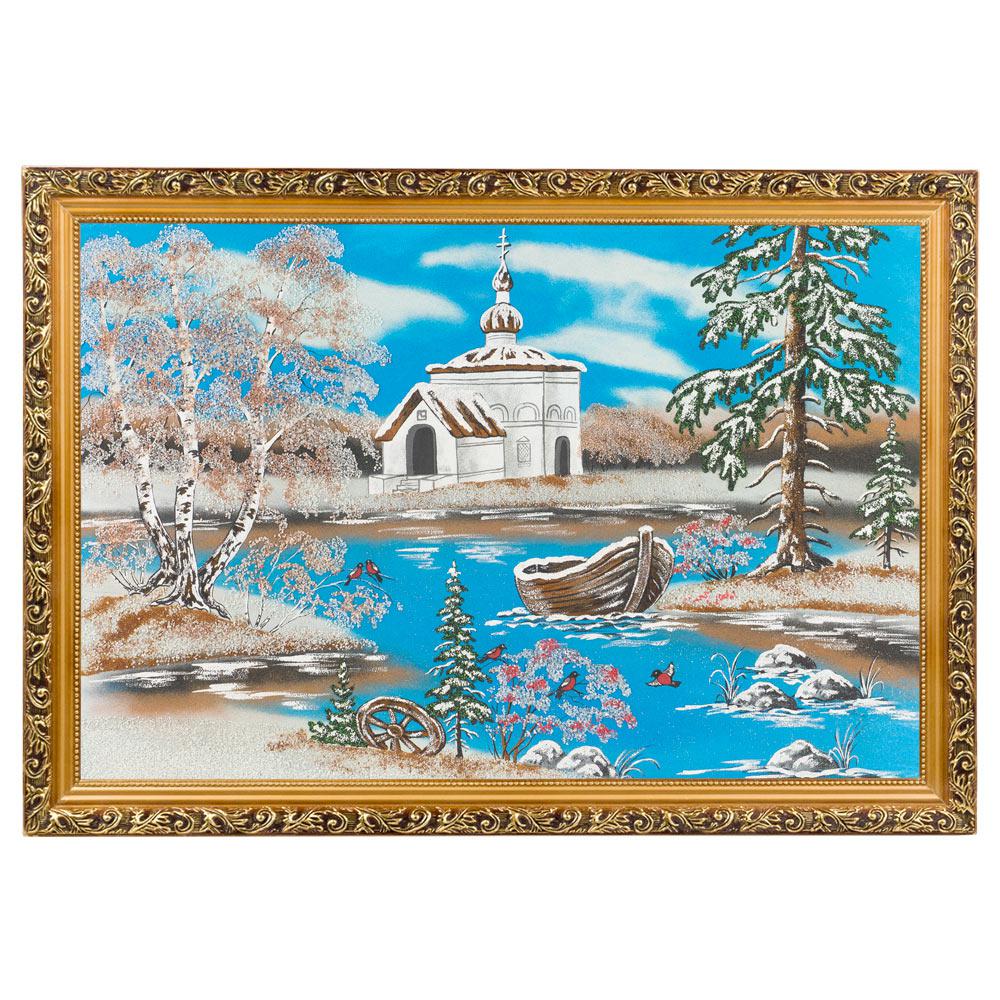 Картина церковь зимнем на берегу багет №6 (40х60 см)