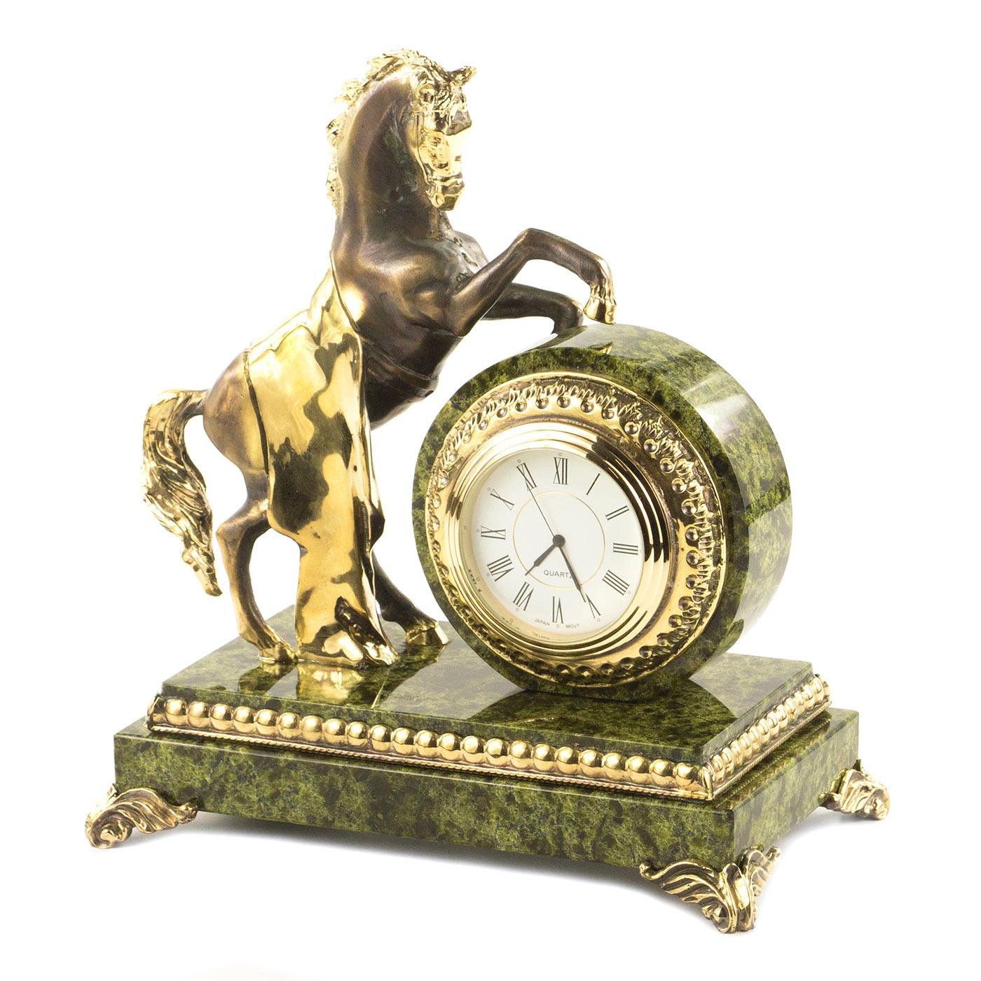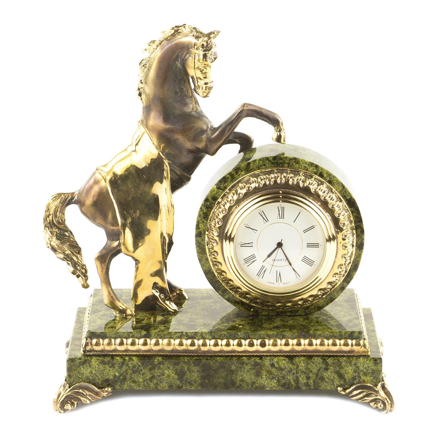 Часы конь с попоной змеевик бронза 165х100х185 мм 2200 гр.