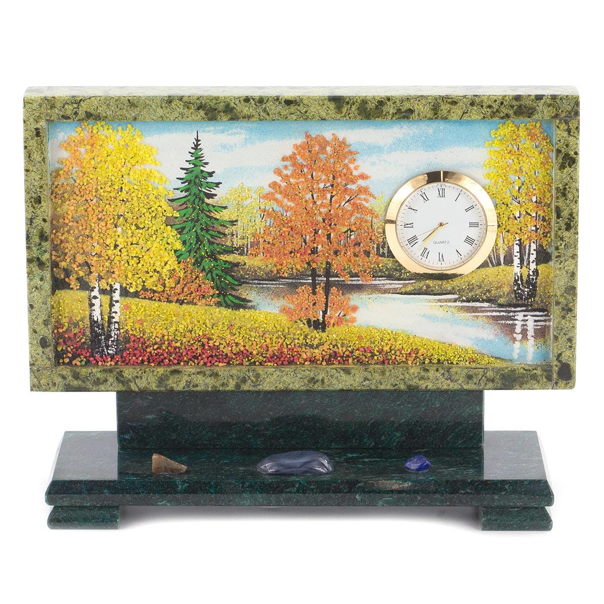 Часы с рисунком осень змеевик 220х70х170 мм 2000 гр.