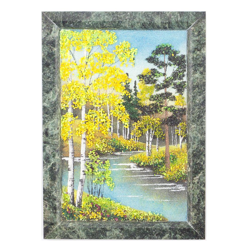 Картина осенний пейзаж рамка змеевик №1 (13х18 см)
