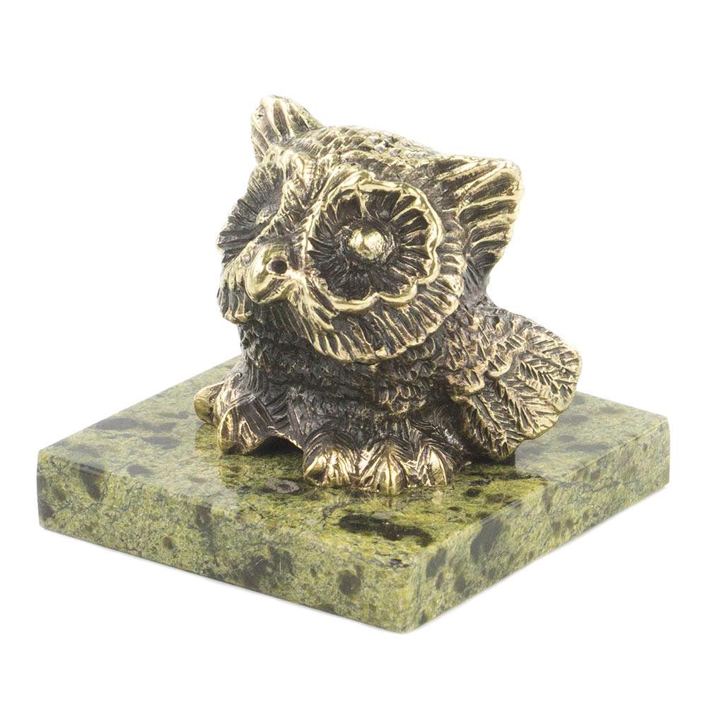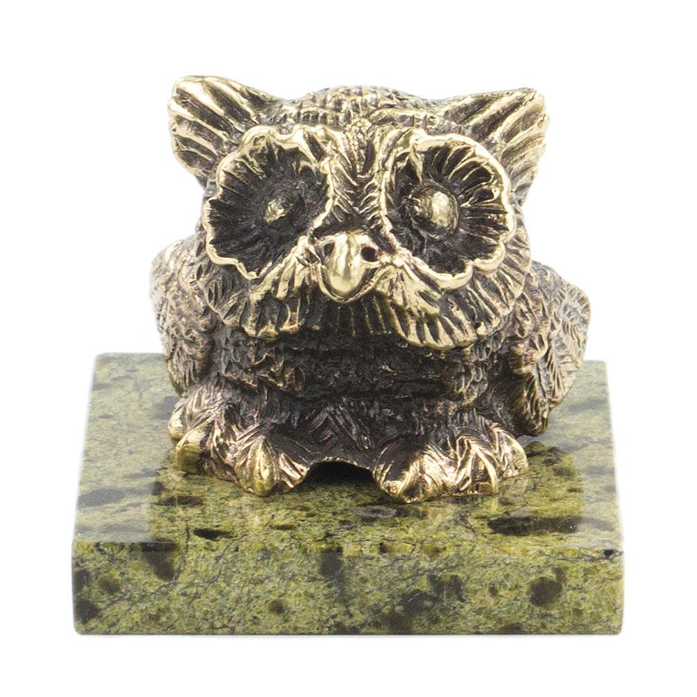Статуэтка филин бронза змеевик 50х50х45 мм 190 гр.