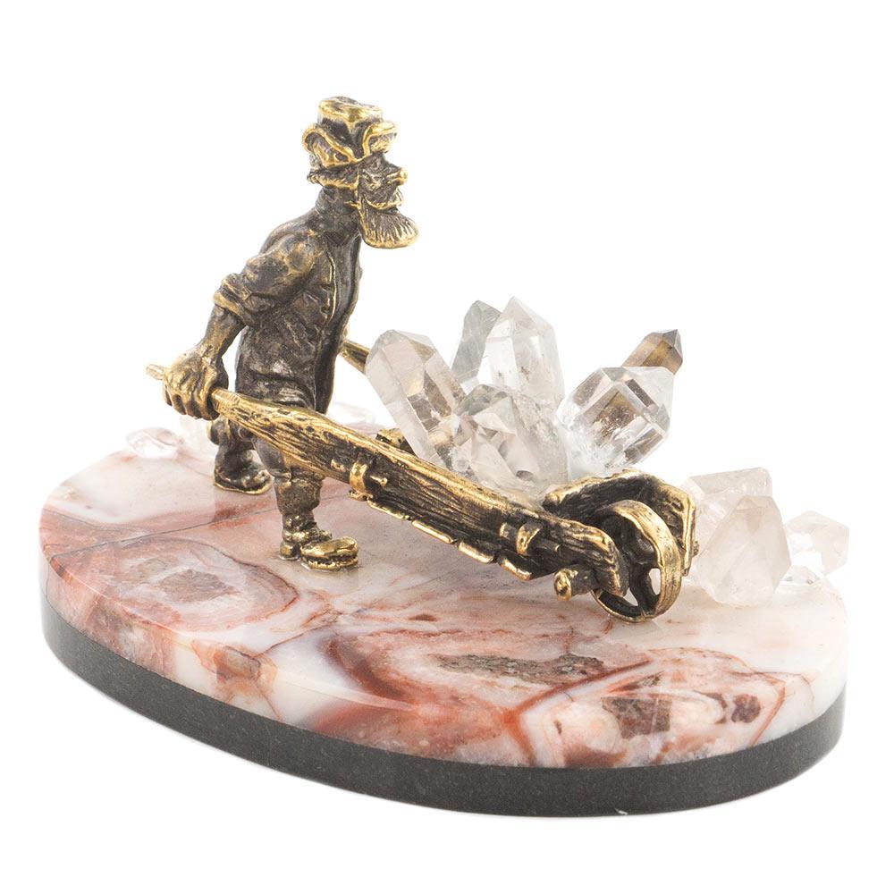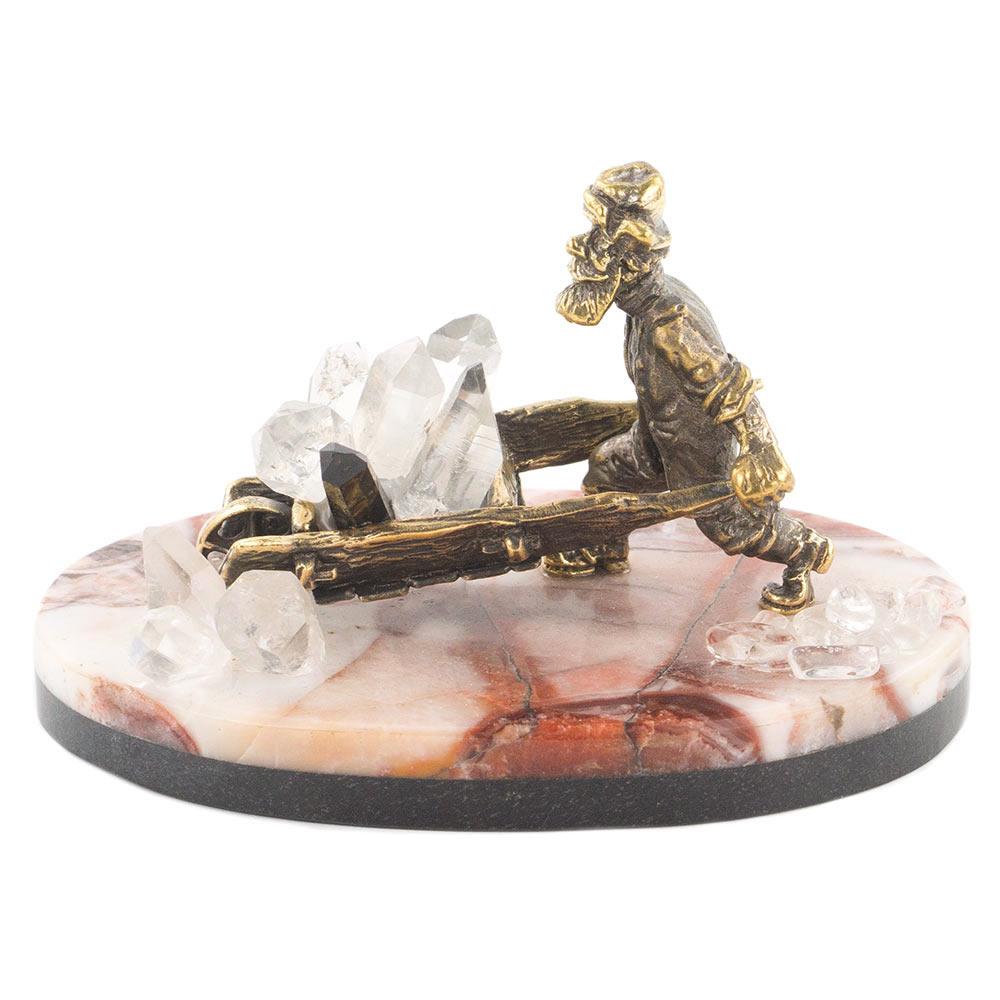 Статуэтка старатель с тачкой креноид бронза 100x65x60 мм 250 гр.