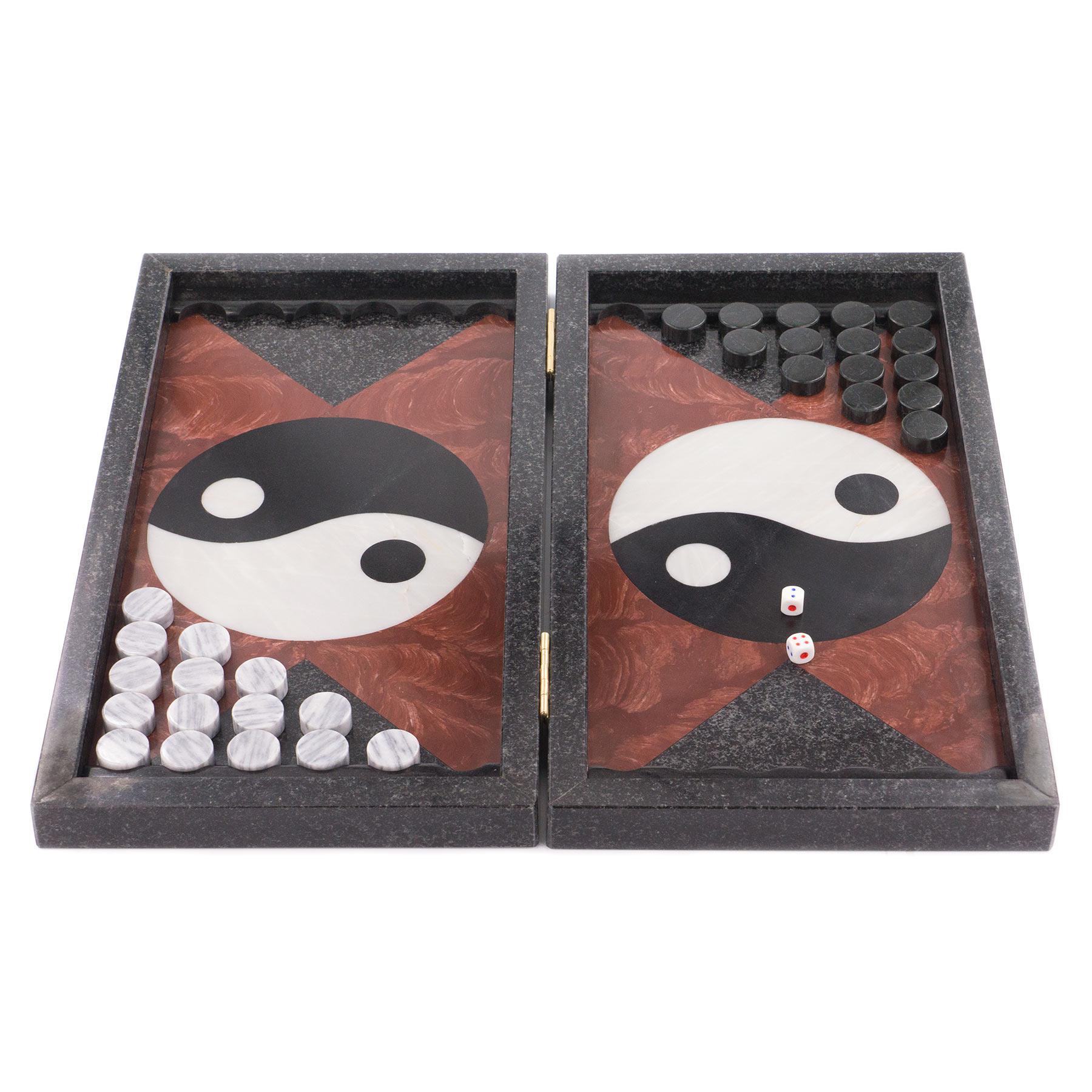 Нарды инь-янь лемезит змеевик мрамор 455x495x30 мм 9000 гр.