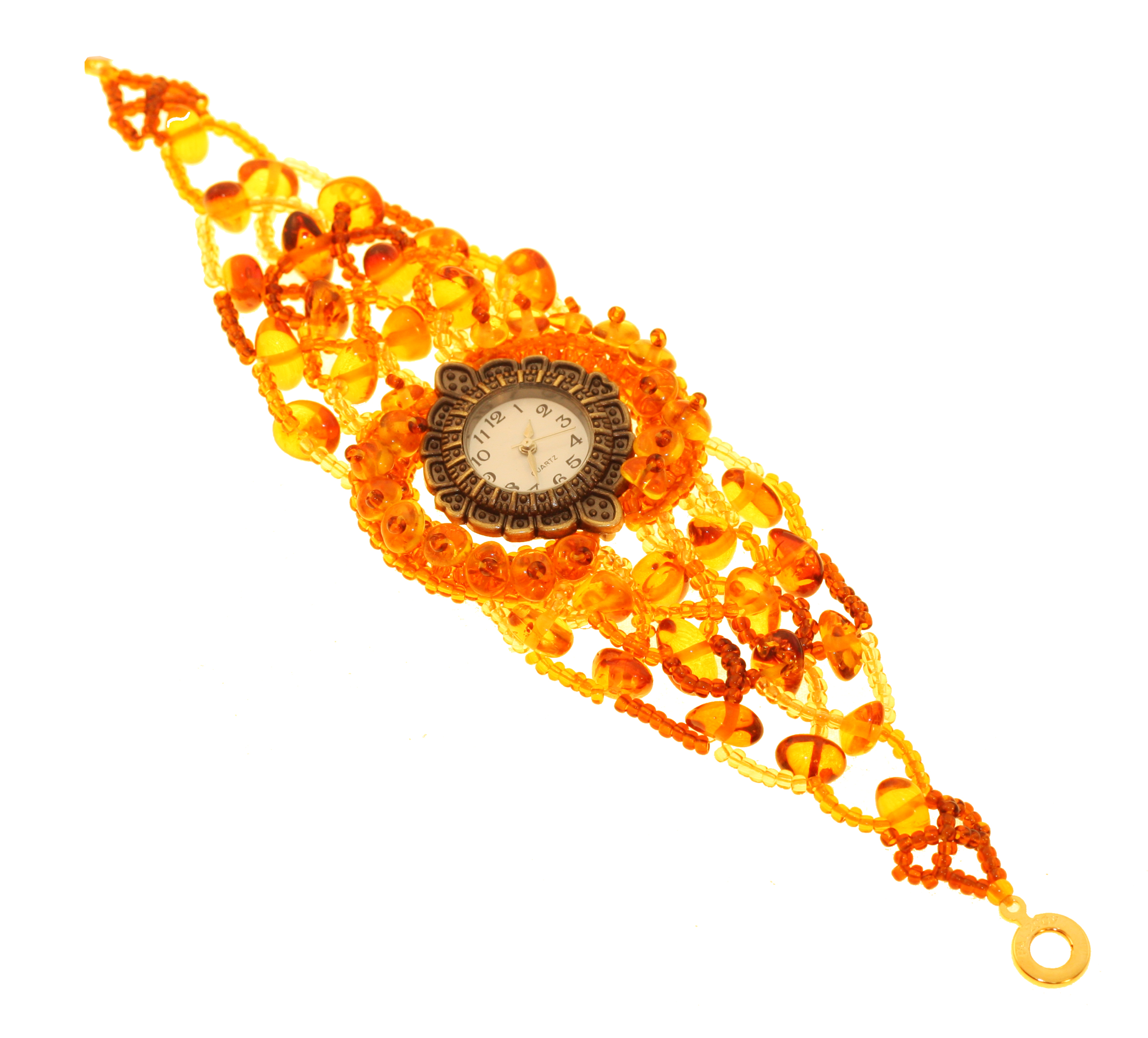Состав: янтарь, бисер, кварцевые часы