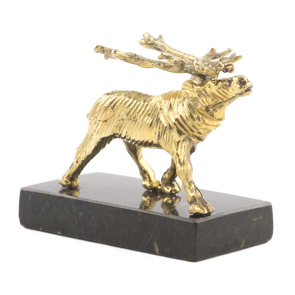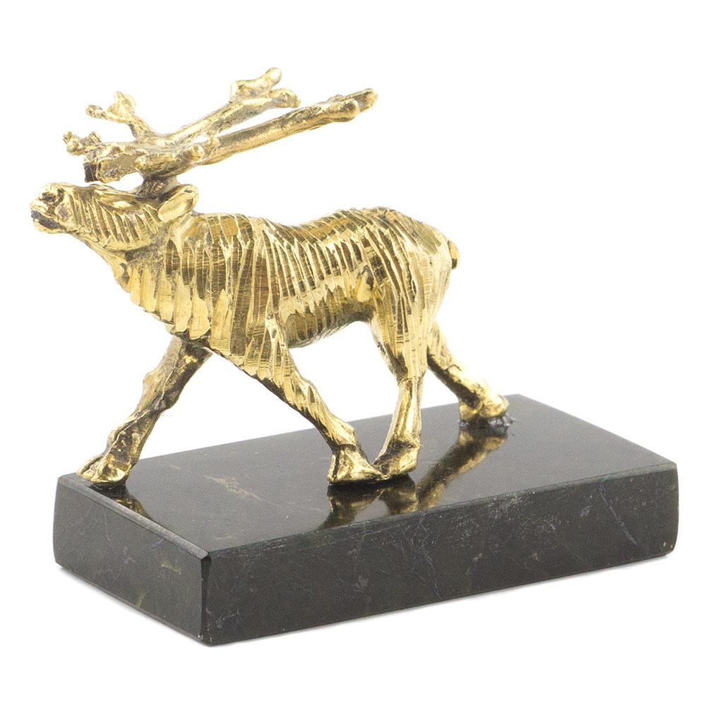 Статуэтка олень идет малый змеевик бронза 50х25х45 мм 60 гр.