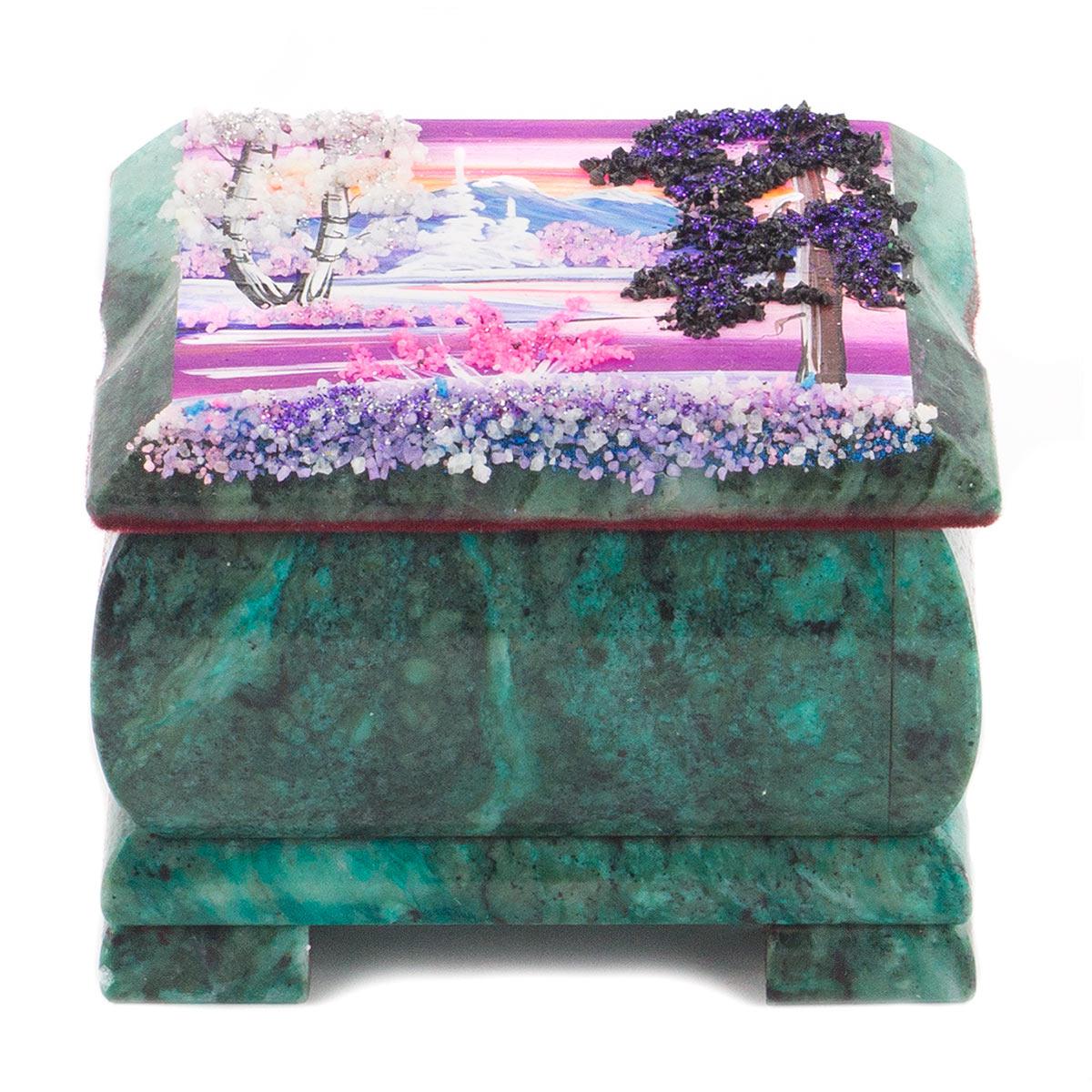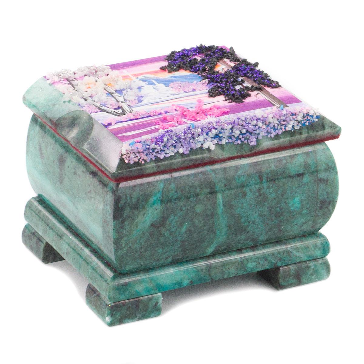 Шкатулка с расписной крышкой зима в ассортименте 100х80х70 мм 700 гр.
