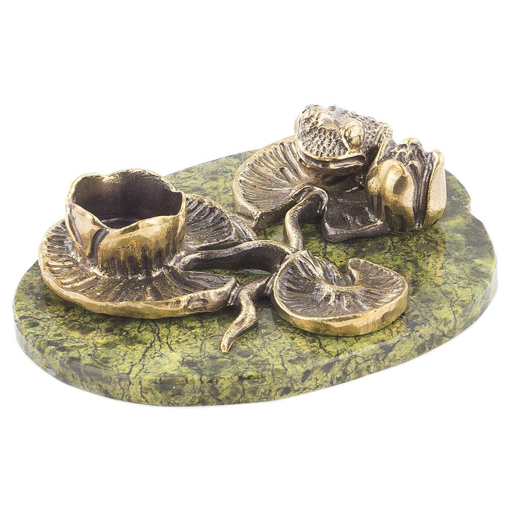Подсвечник царевна лягушка бронза змеевик 130х95х30 мм 450 гр.