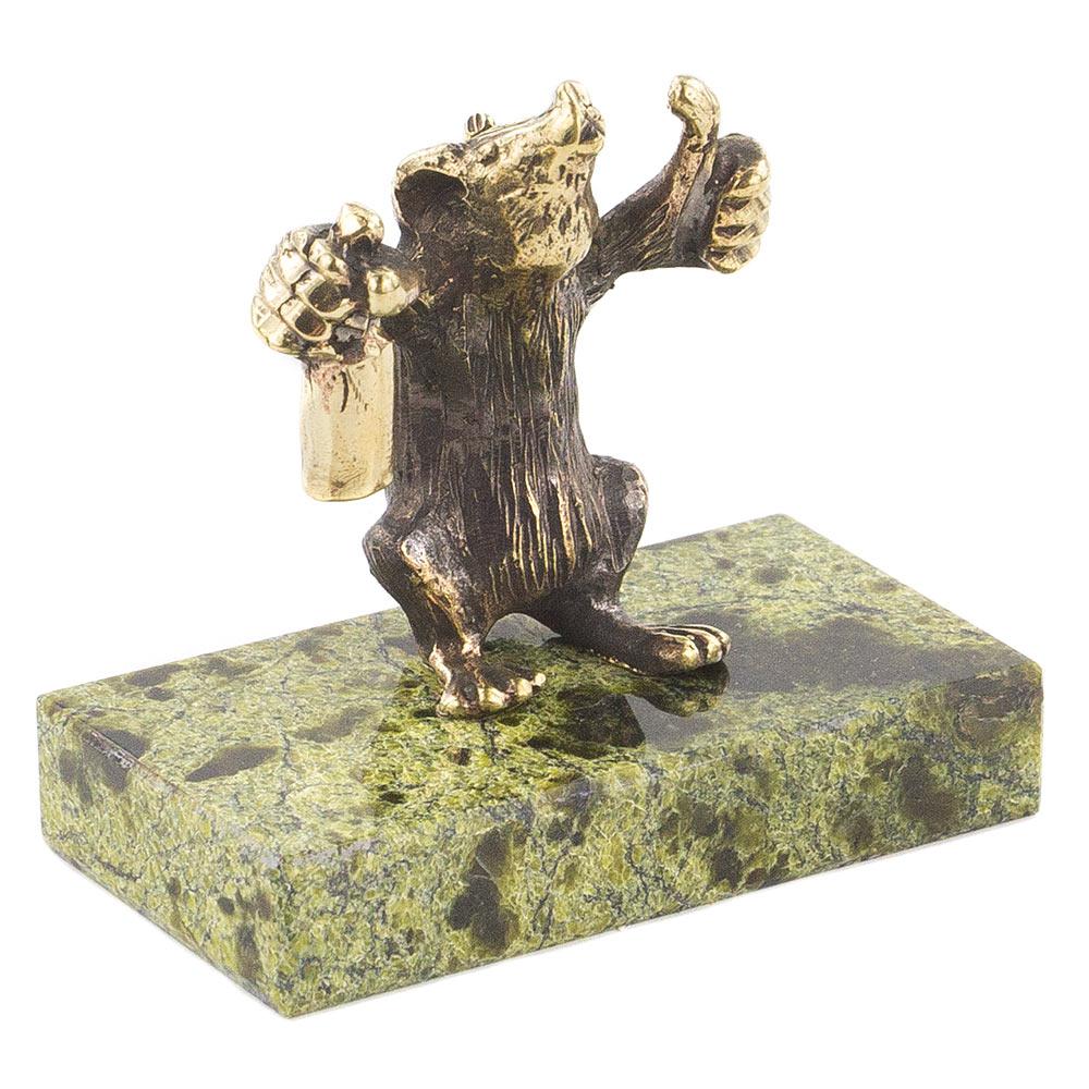 Статуэтка крыса алкоголик змеевик бронза 50х25х45х мм 65 гр.