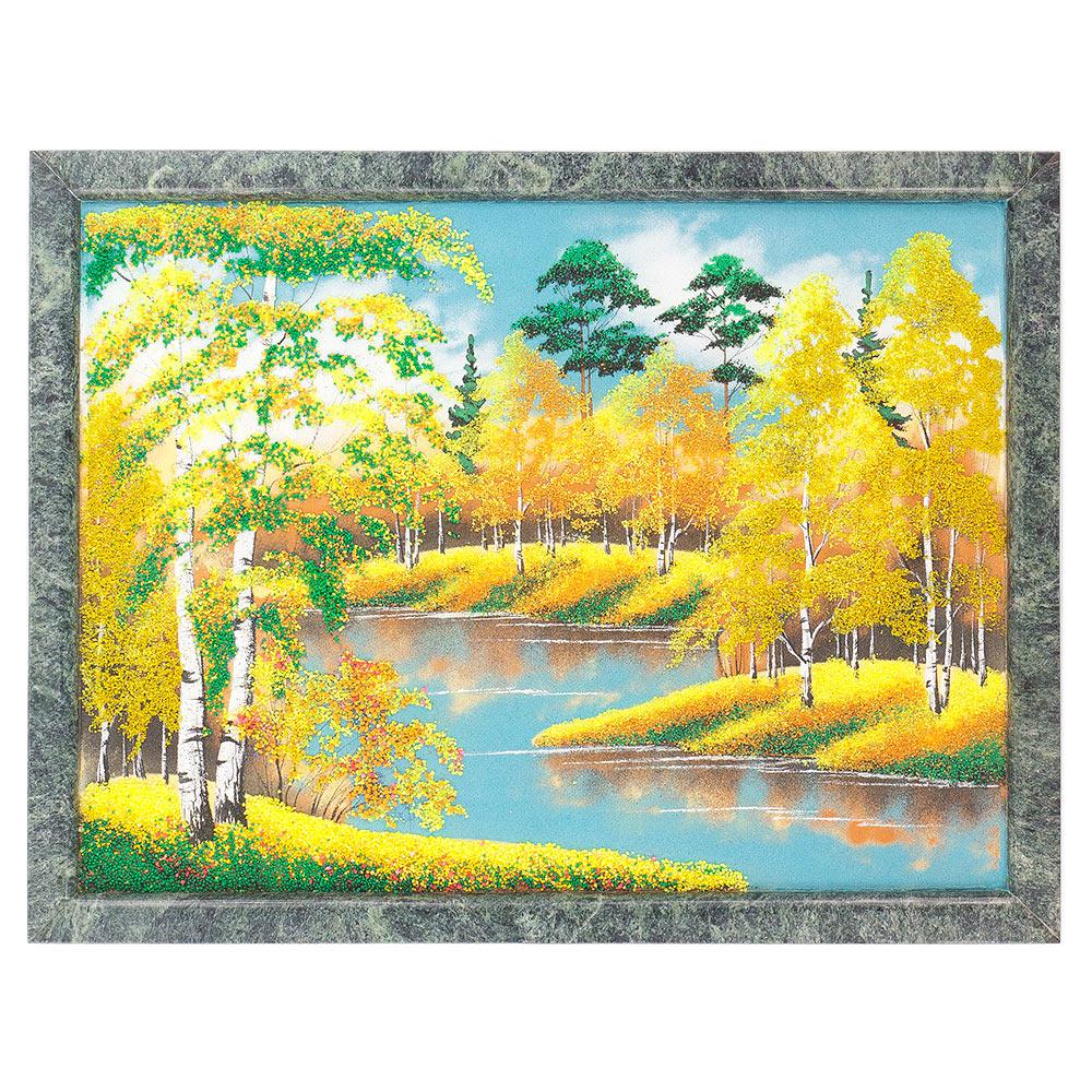Картина осенний пейзаж рамка змеевик №4 (34х44 см)