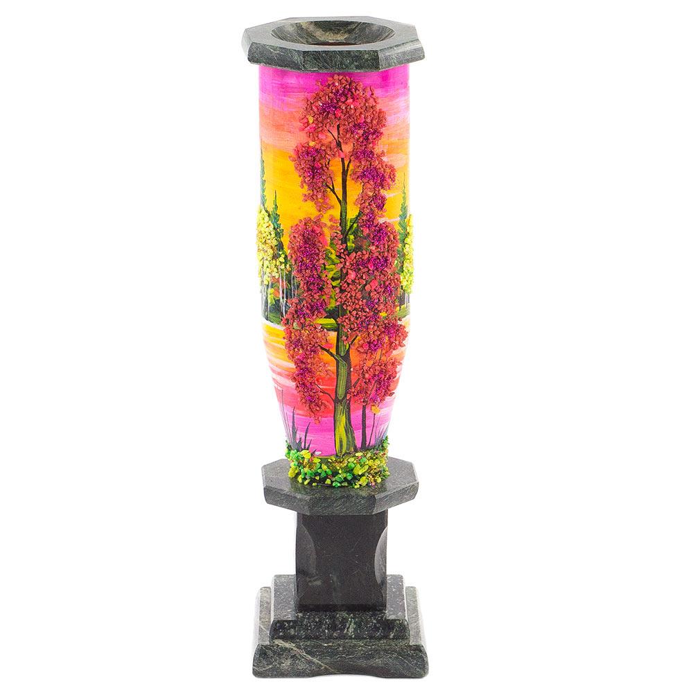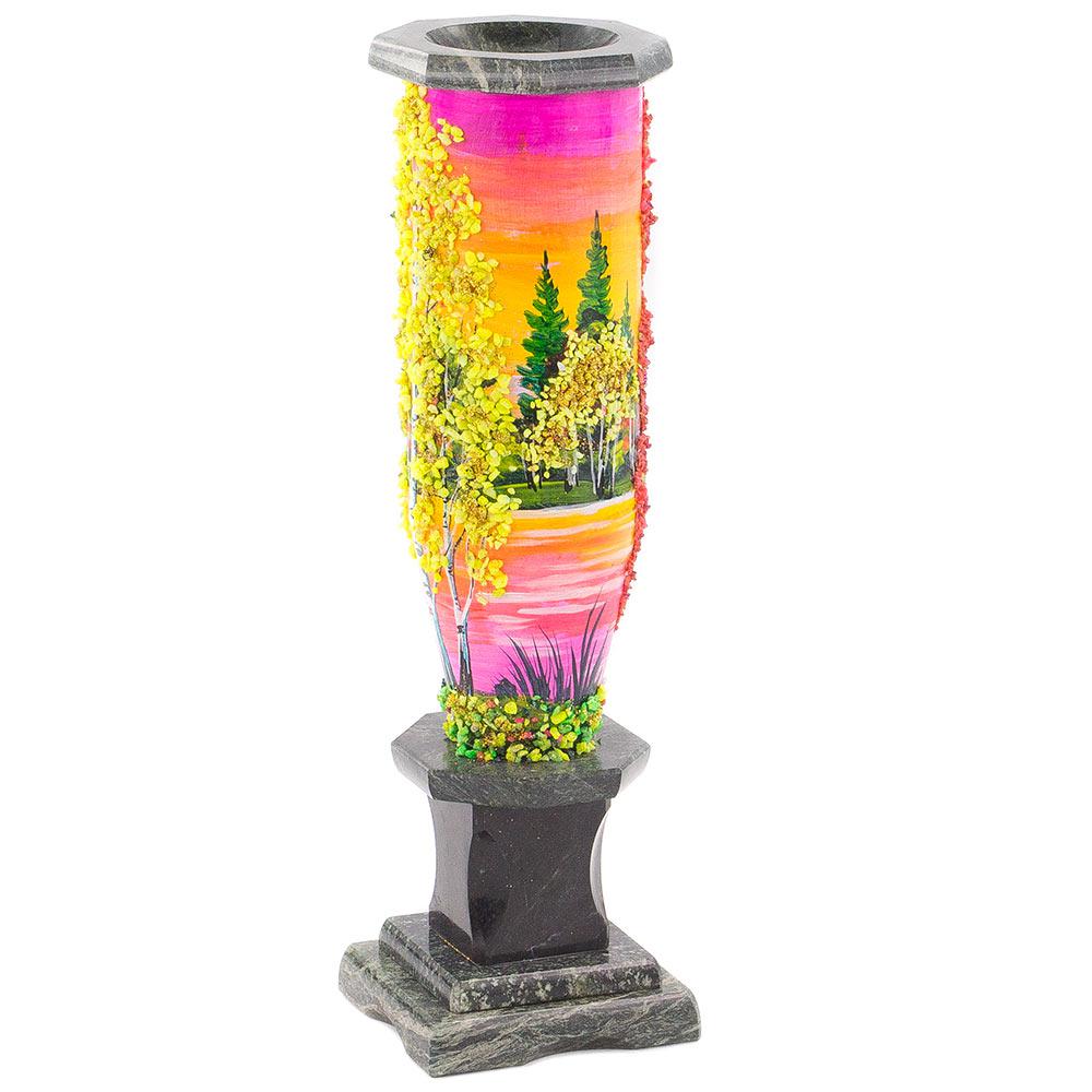 Ваза осень круглая змеевик 80х80х250 мм 900 гр.. Вес 900 г Размер 8х8х25 см Материал змеевик, каменная крошка