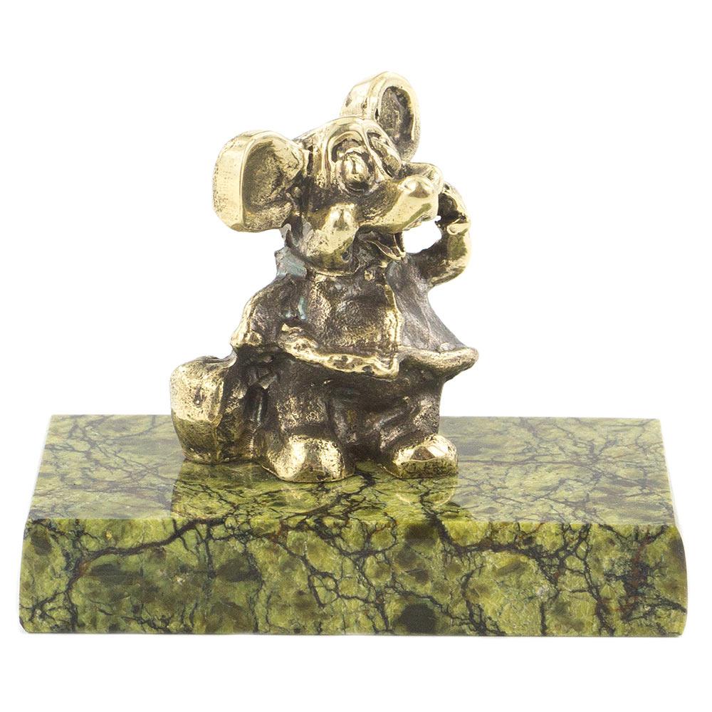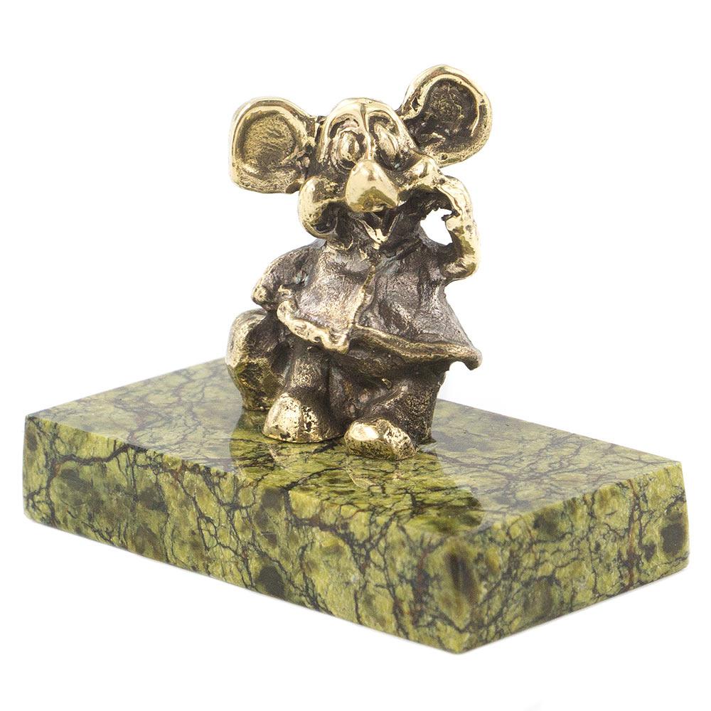 Статуэтка мышка с сумкой змеевик бронза 50х25х40 мм 60 гр.