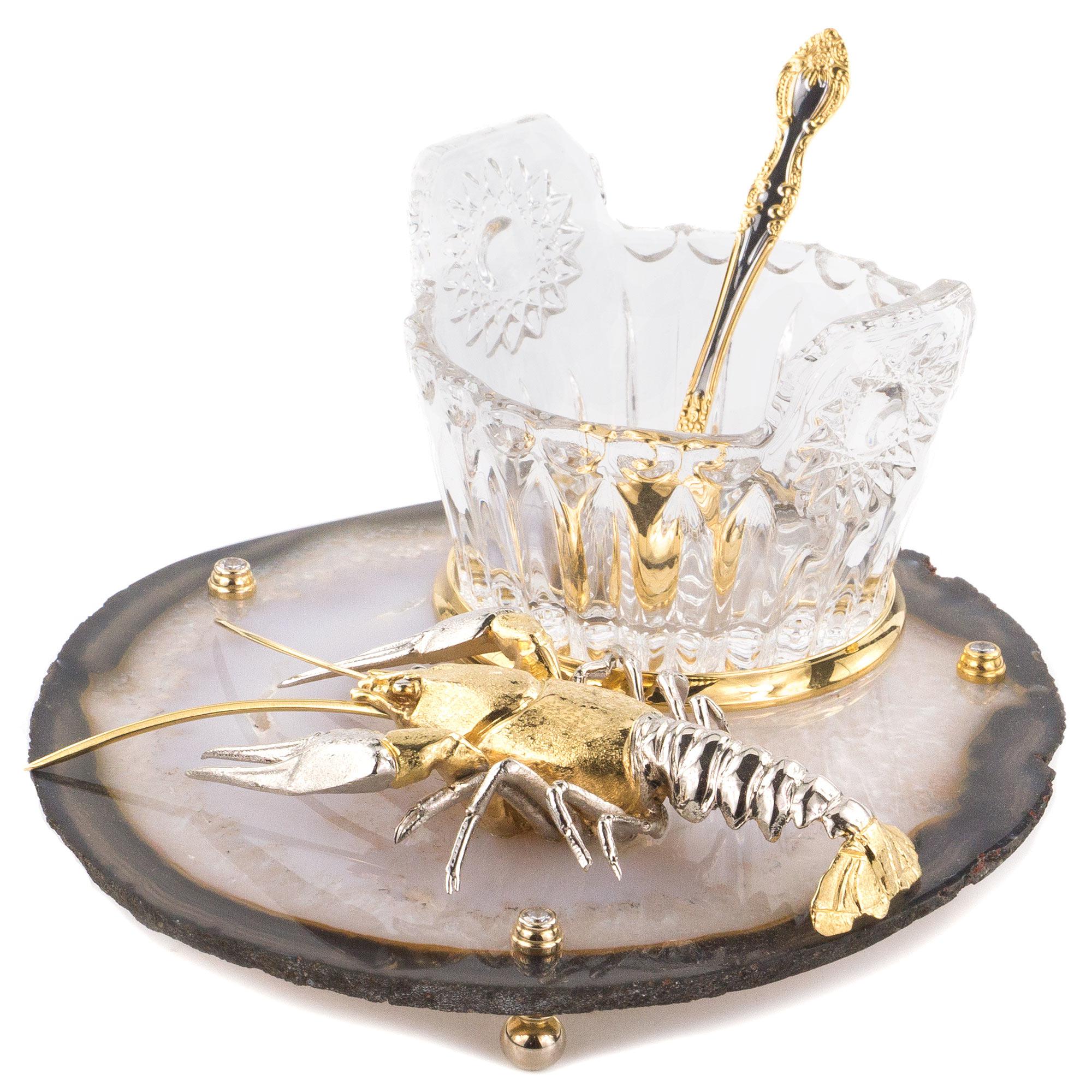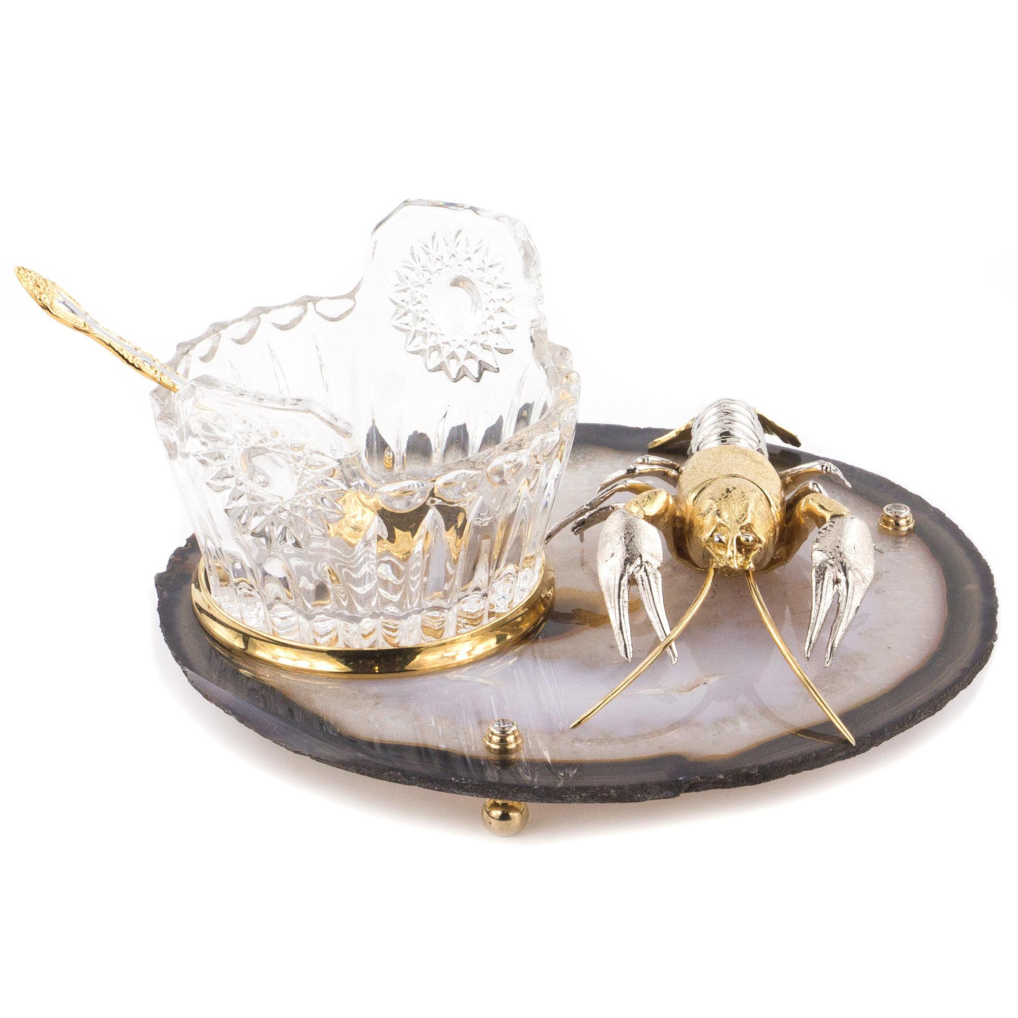 Икорница рак агат бронза позолота 175х160х95 мм 2300 гр.. Вес 2300 г Размер 17,5х16х9,5 см Материал агат, бронза, никель, покрытие золотом (999,9).