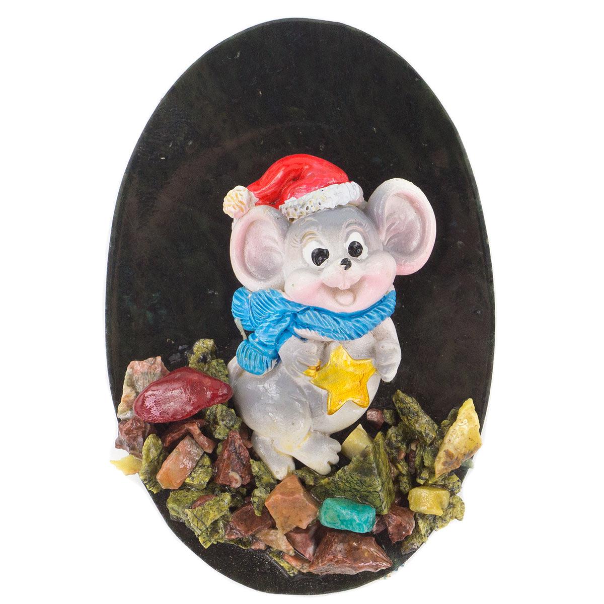 Магнит мышка со звездой змеевик самоцветы 100х70х20 мм 80 гр.