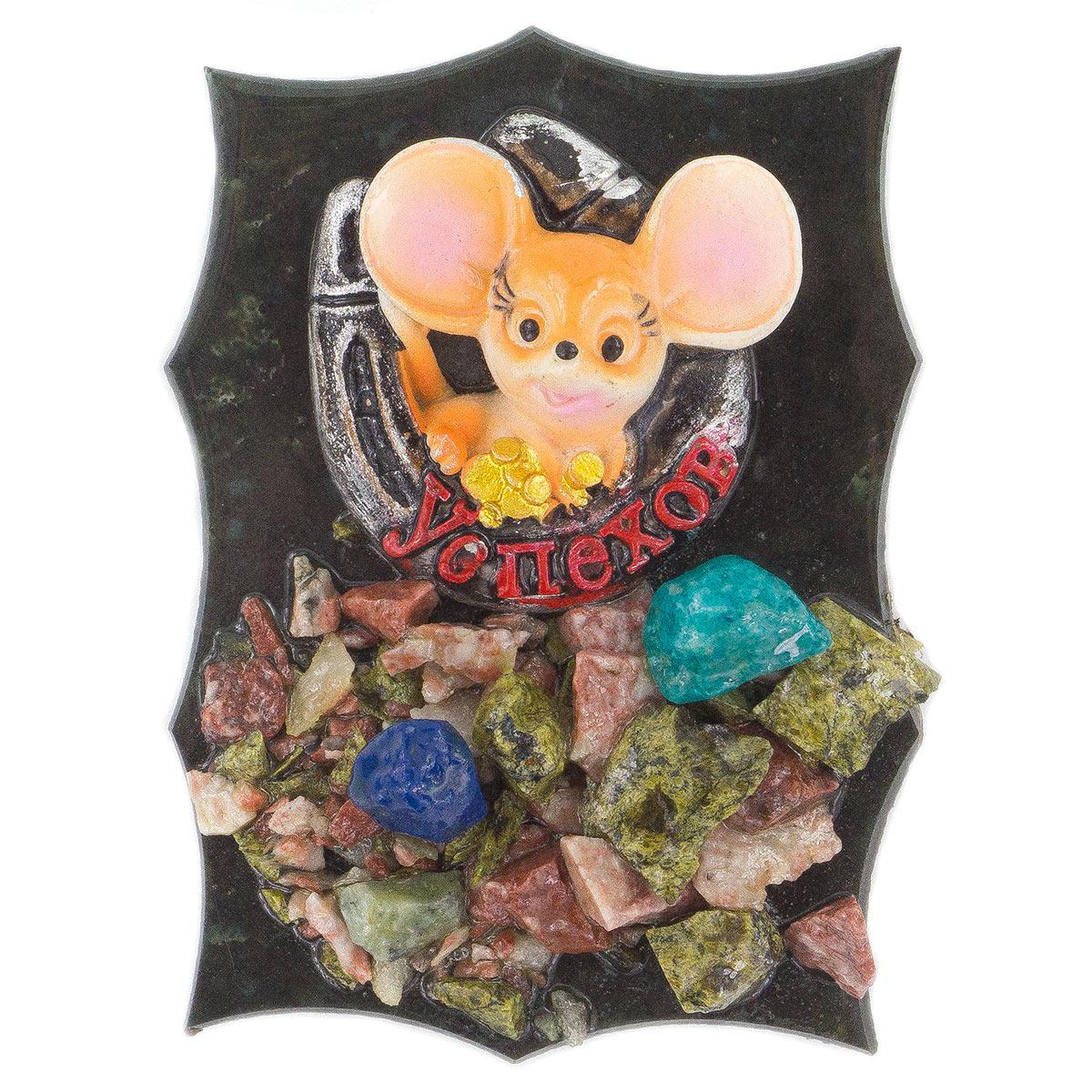 Магнит мышонок успехов змеевик самоцветы 100х70х20 мм 80 гр.