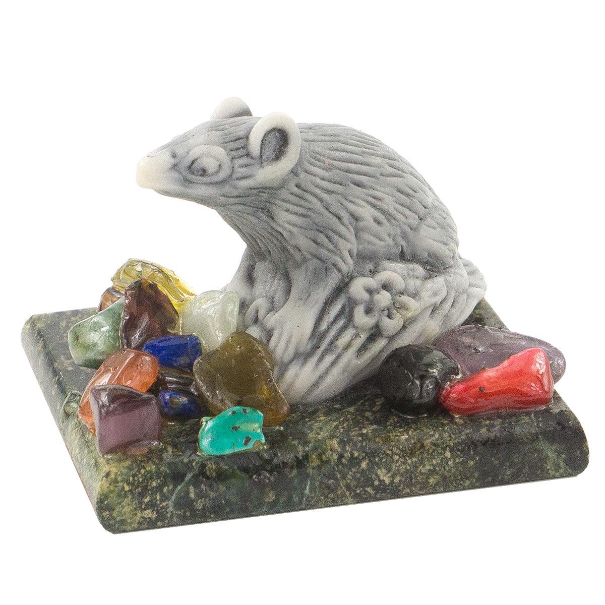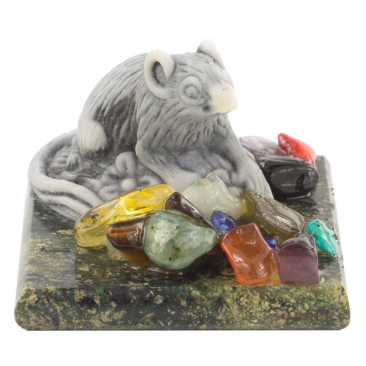 Сувенир крыса мрамолит самоцветы 40х40х30 мм 40 гр.