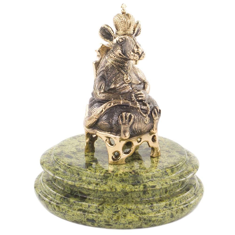 Сувенир крыса-король змеевик бронза 110х110х130 мм 890 гр.
