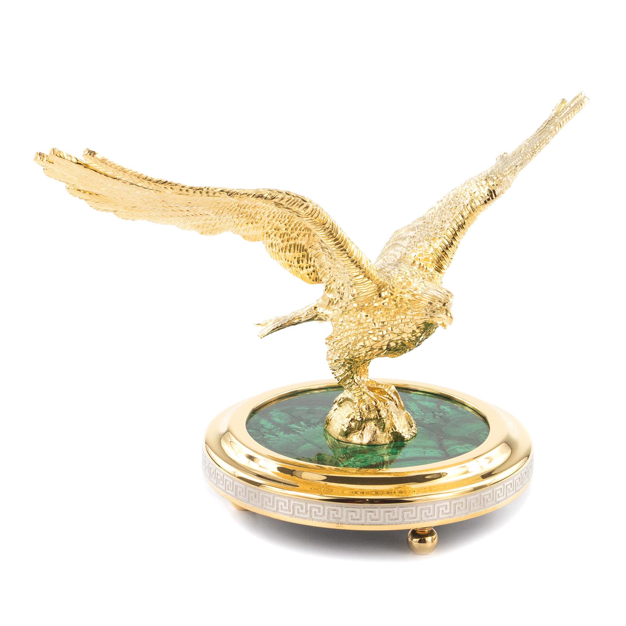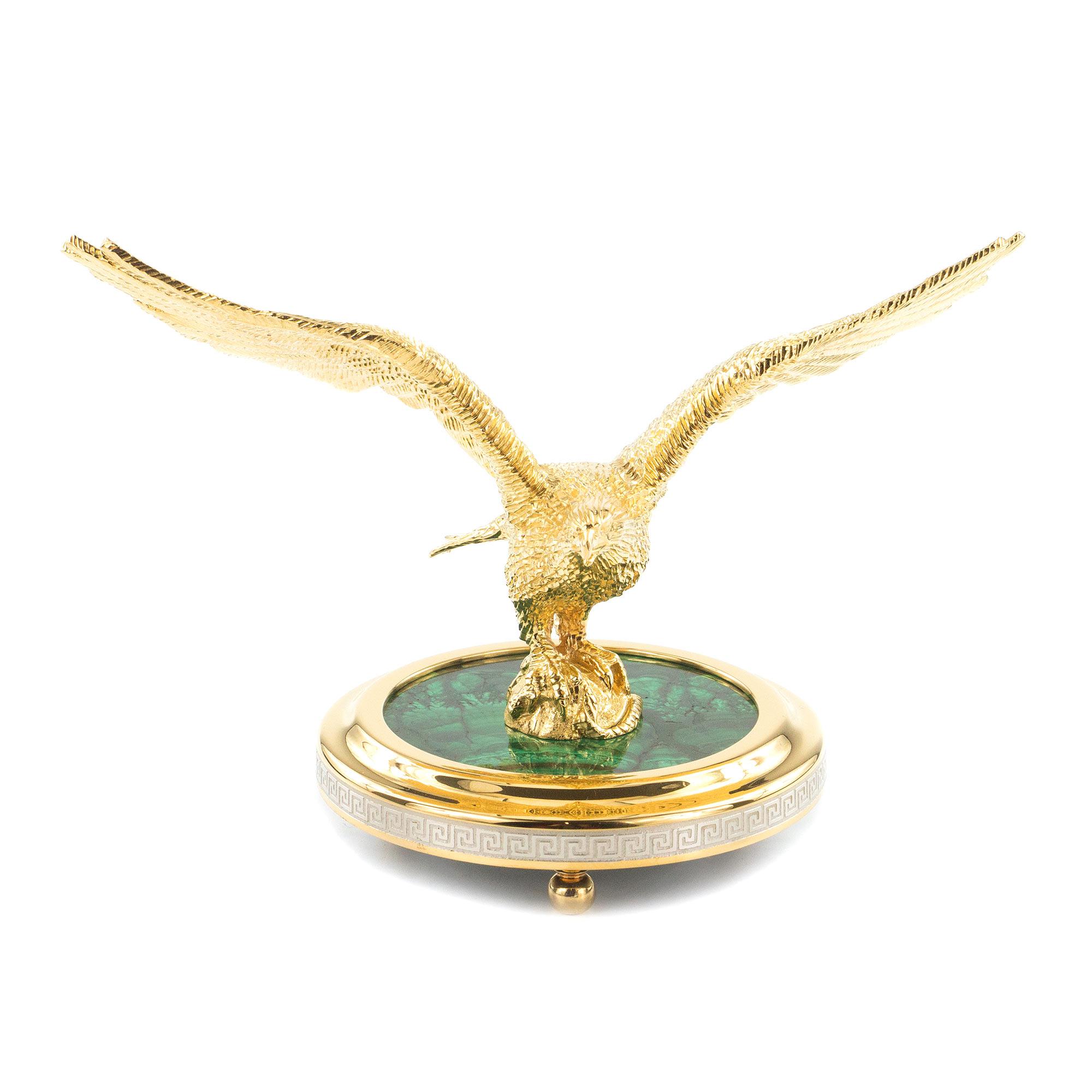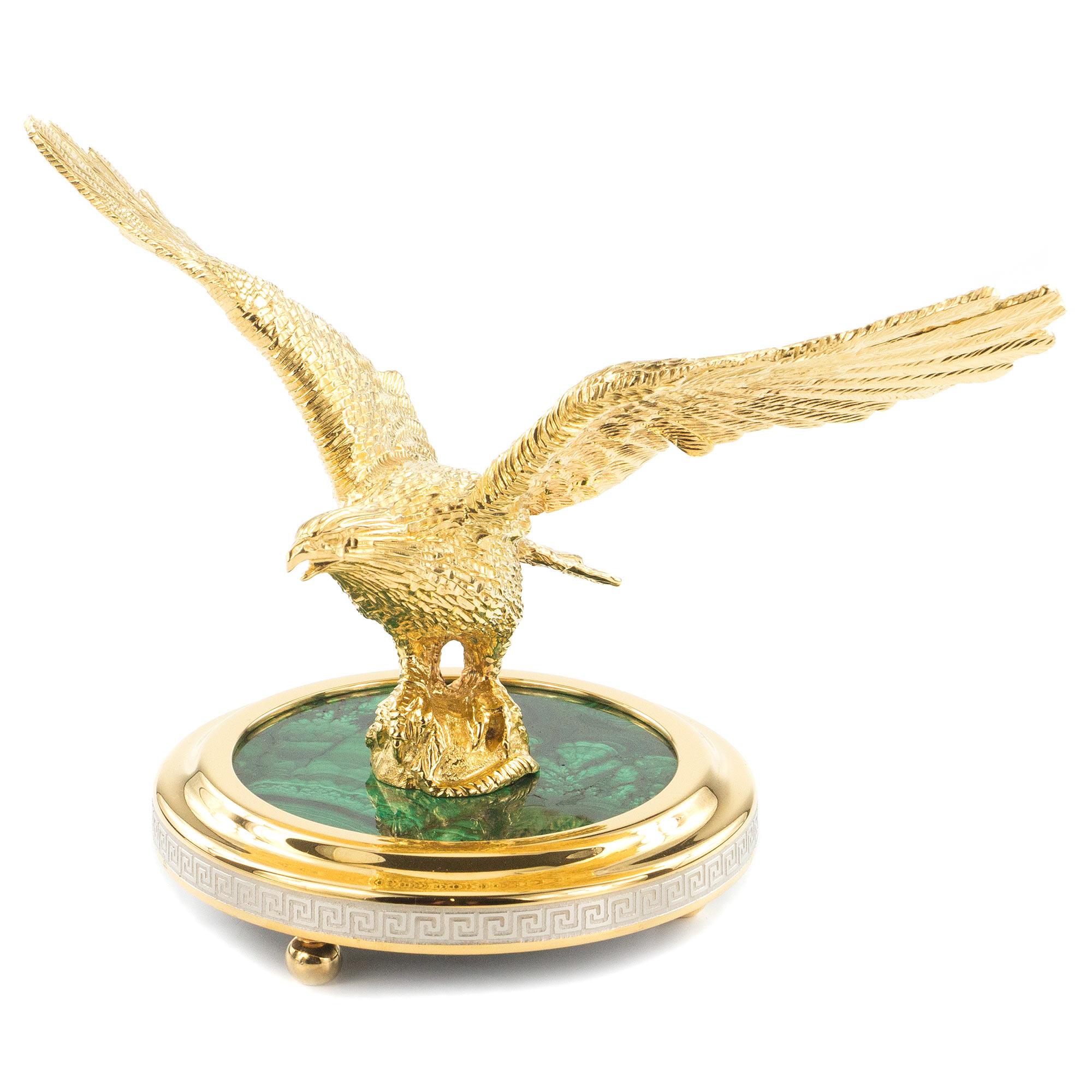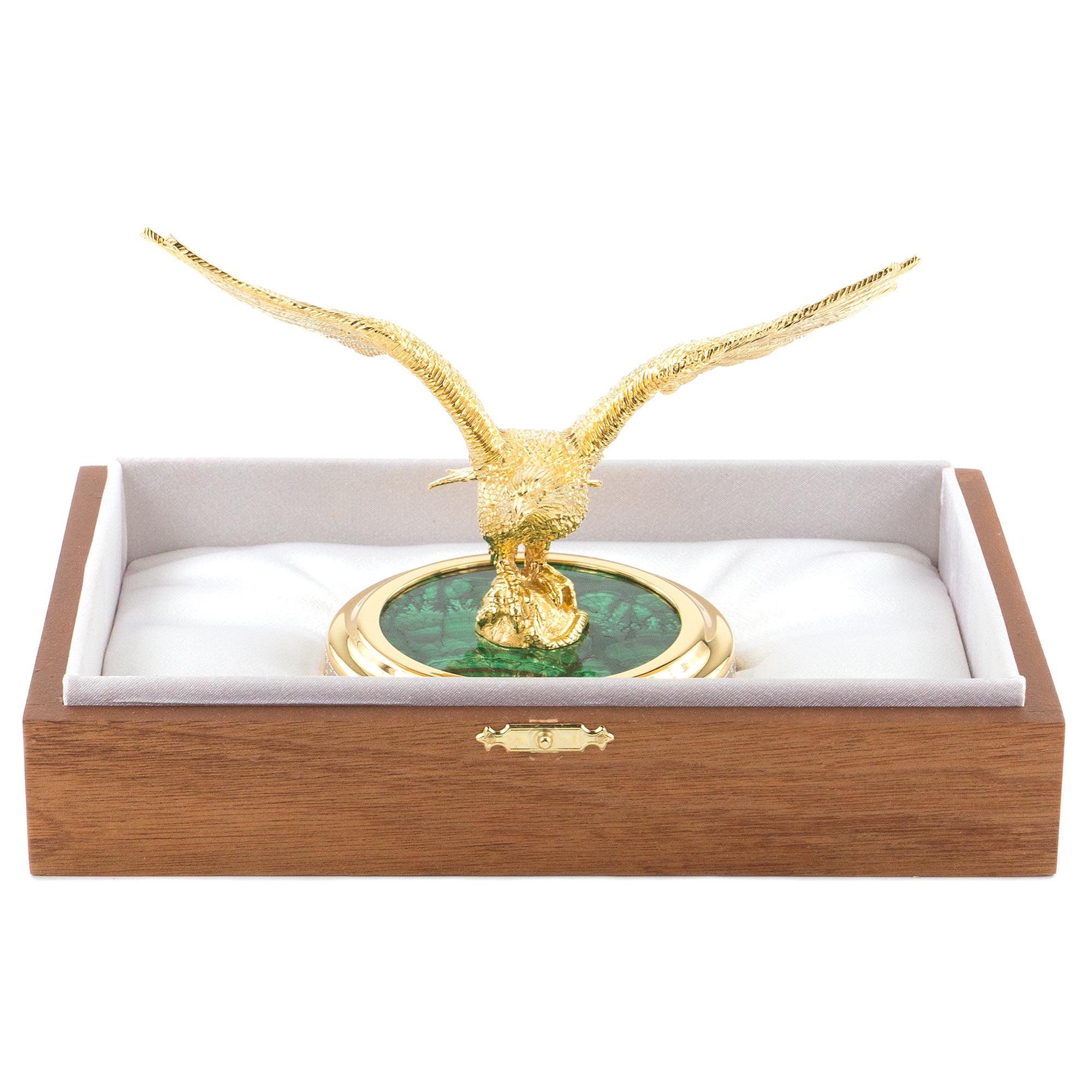 Статуэтка орел малахит позолота 185х105х125 мм 2150 гр.