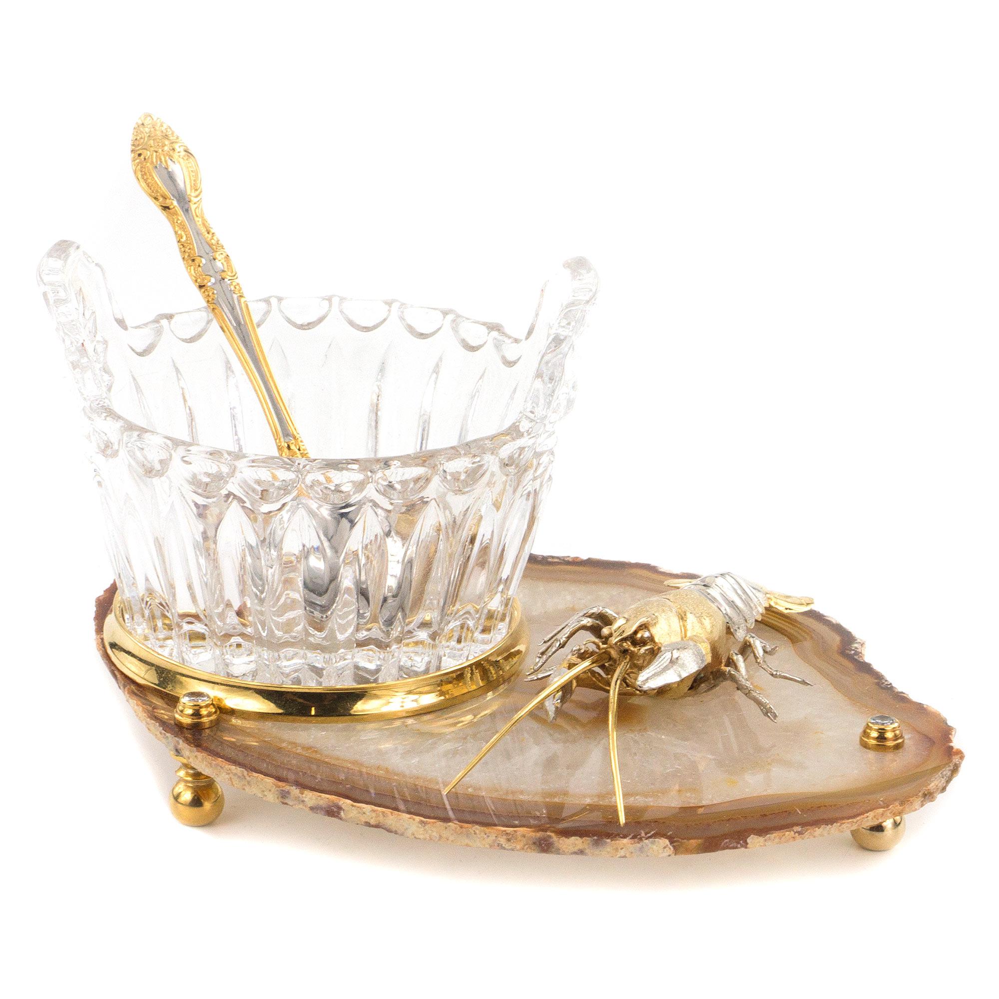 Икорница рак малая агат бронза позолота 165х120х95 мм 1600 гр..