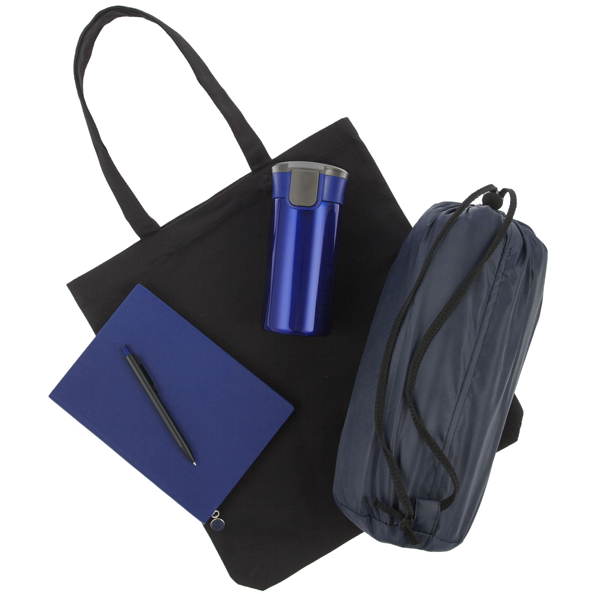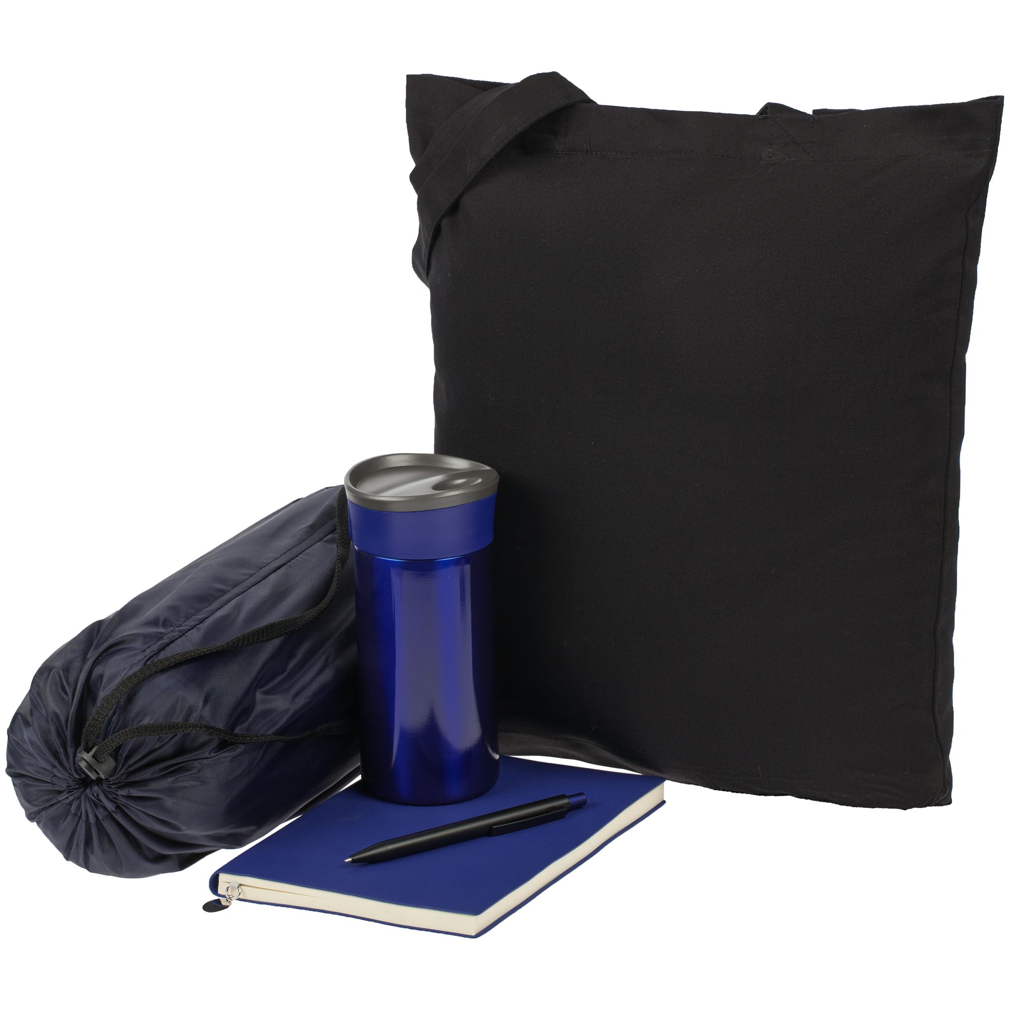 Материал: термостакан - нержавеющая сталь, пластик; ежедневник - искусственная кожа, металл; ручка - металл; плед - полиэстер, плотность 210 г/м; флис, плотность 180 г/м; сумка - хлопок 100%, плотность 220 г/м