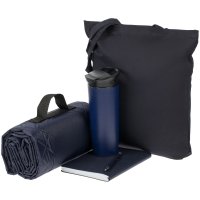 Материал термостакан - пластик; ежедневник - искусственная кожа; ручка - алюминий; плед - полиэстер, флис, плотность 220 г/м; сумка - хлопок 100%, плотность 220 г/м