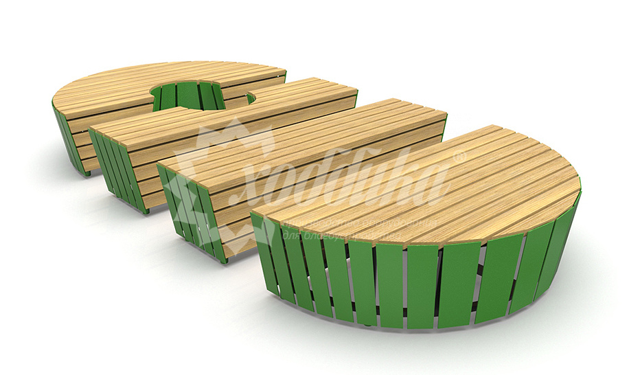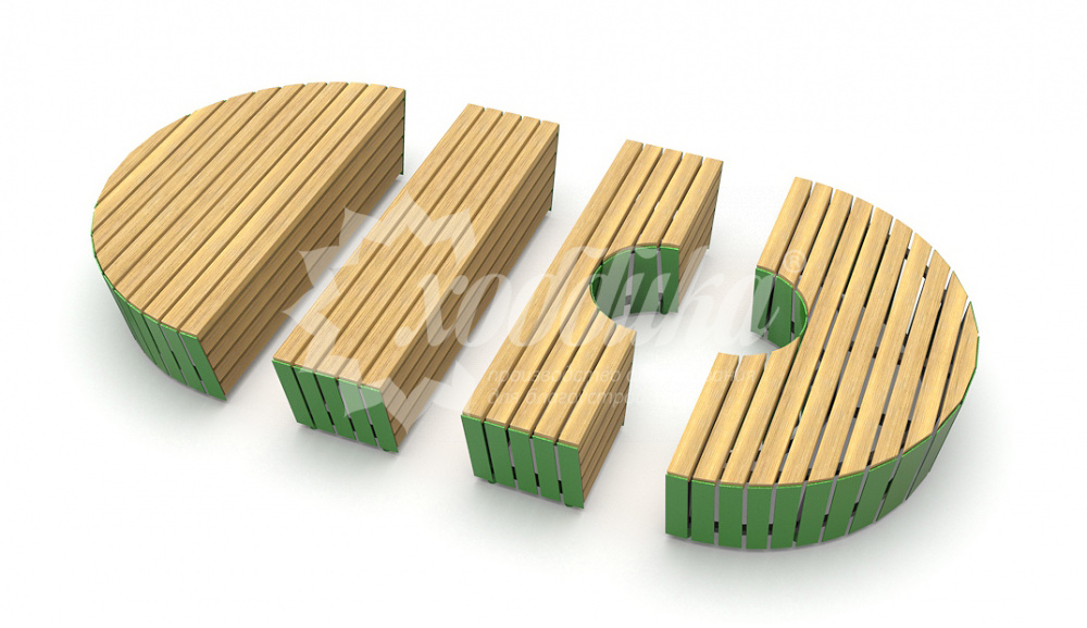 Модульная скамейка «экополис комби-1». Подробные характеристики Скамейка поставляется в разобранном виде! Материалы: Опоры: Cталь. Покрыты порошковой полимерной краской. Возможность выбора цвета по каталогу RAL. Стандартный цвет (по умолчанию) - черный. Сиденье и спинка: Брус из хвойных пород древесины - ангарская сосна (варианты исполнения: лиственница, композитные материалы) различного сечения. Огнебиозащитные пропитки + тонировочный состав с антисептиком + два слоя яхтного лака с промежуточным шлифованием. Возможность выбора цвета из палитры. Фурнитура: Оцинкованная. Возможность выбора цвета фурнитуры по каталогу RAL. Стандартный цвет (по умолчанию) - серебристый. Возможность использования потайной/скрытой фурнитуры. Технические характеристики: Высота: 450 мм Ширина: 1800 мм Длина: 2680 мм Высота сиденья: 450 мм Ширина сиденья: Длина посадочного места: 1800 мм Диаметр: 1080 мм Вес: кг Варианты цвета на выбор: , махагон, палисандр, тик,