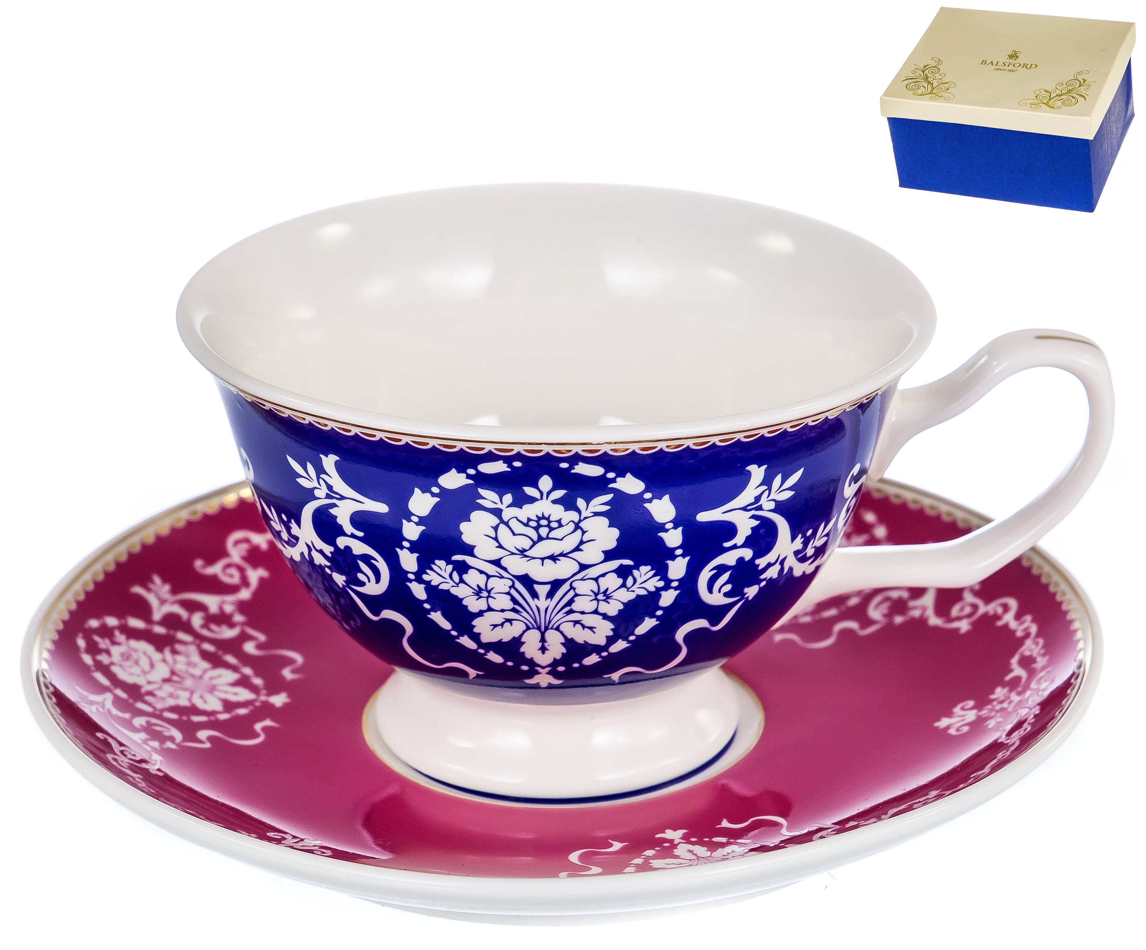 Маркиза, набор чайный (2) чашка 200мл + блюдце, new bone china, цветной дизайн с золотом, упаковка подарочная